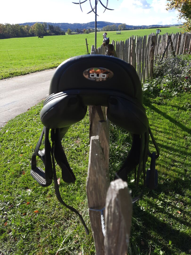 tyvärr läder skadat vid den bakre pommel ( se bilder ) ; det är därför det är så billigt