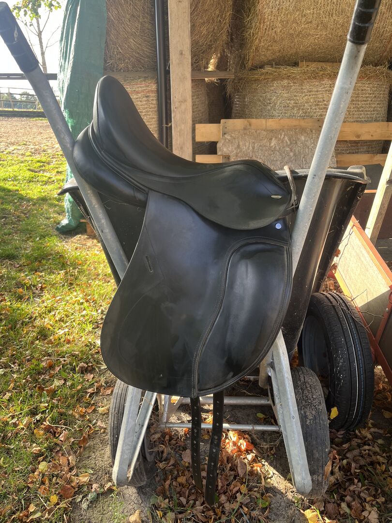 Tekna dressyr S line sadel 16,5 tum - Jag säljer min Tekna dressyrsadel. Den satt på min westfaliska valack som var brett byggd. Skänkelbredden kan justeras genom att byta skänkelplattor. Sadelträdet är inte skadat.