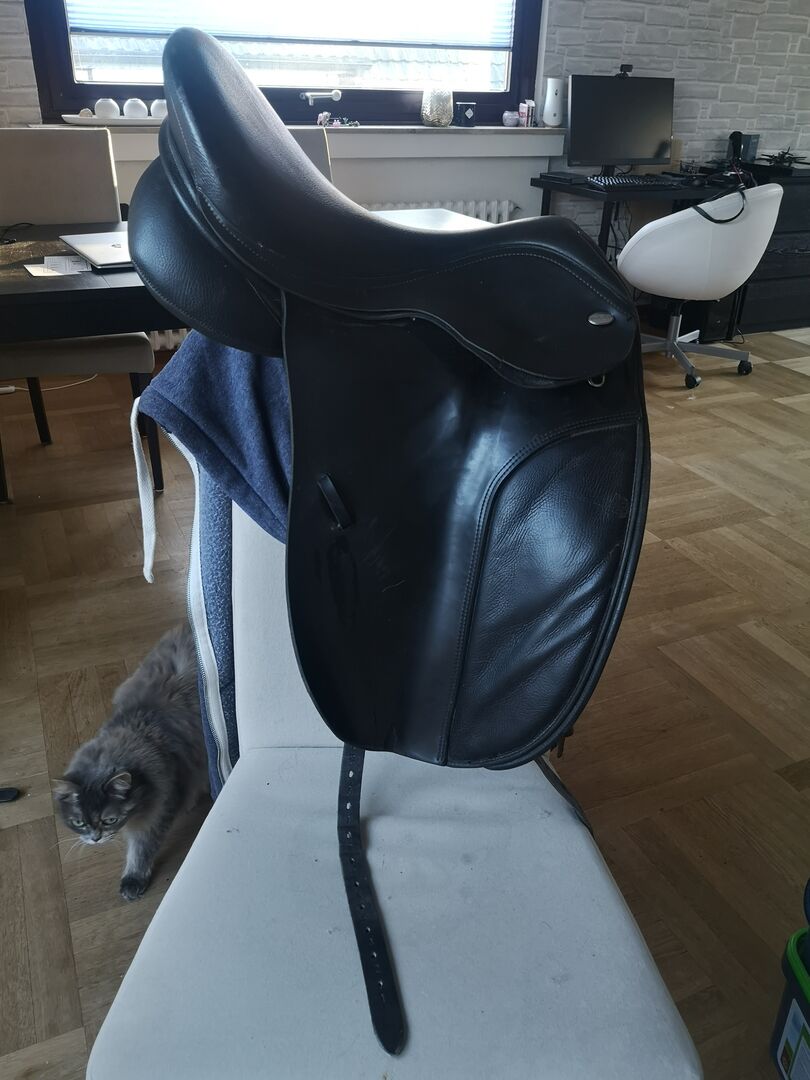 Thorowgood t6 dressyr sadel mot budgivning - Säljer min Thorowgood-sadel eftersom den är för lång för min korta Hafi. Utbytbara munstycken (röda och gula ingår). Har två skönhetsfläckar men är i gott använt skick. Bra som en första sadel för inskolning. Kommer att säljas mot budgivning, eftersom den måste bort (nej, den kommer inte att säljas för 50 €, men jag är flexibel).