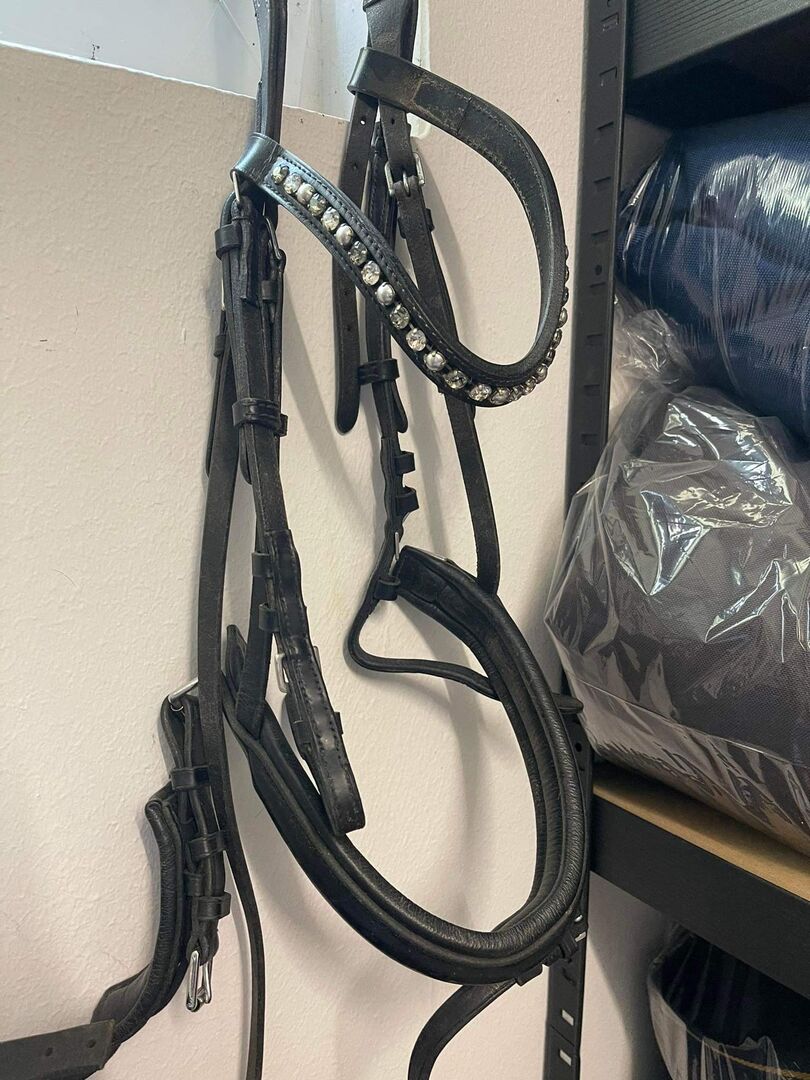 Otto Schumacher träns, engelsk spänne, storlek WB + extra konfigurerat pannband med Swarovski-stenar och pärlor -90€ (nytt pris var över 250€)