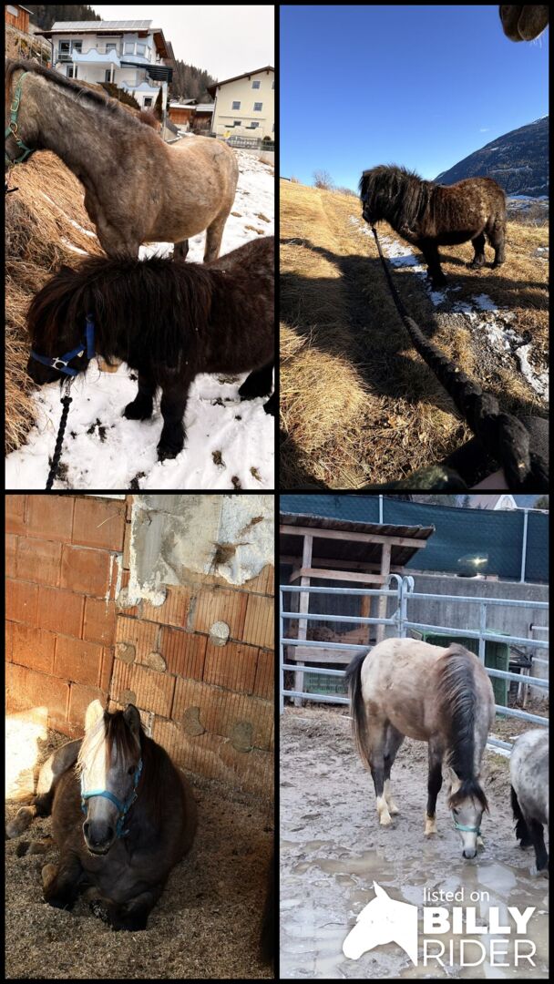 Till salu 2 söta ponnyer - Till salu 2 söta ponnyer, höjd 130 och cq 70cm. Båda helt söta och förtroendefulla. Båda har papper och kan användas för avel eftersom båda är hingstar. Den lilla kommer att vara ljus på våren och mörk på hösten. Om du är intresserad, vänligen kontakta oss. De bor tillsammans i Telfs.