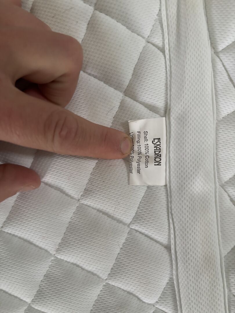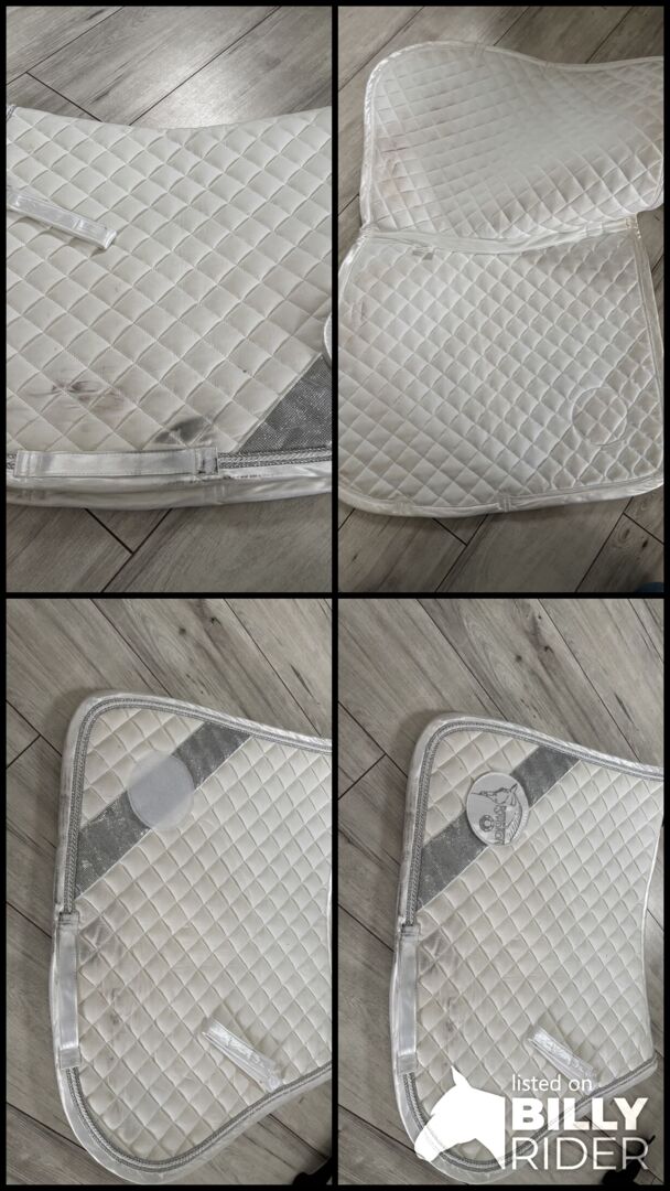 Till salu Eskadron Platinum Vs - Begagnat Eskadron Platinum schabrak i VS till salu. Hästhuvudet på sidan är kardborrefast och kan bytas ut mot ett startnummer. Då jag inte längre rider tävlingar säljer jag dem.
