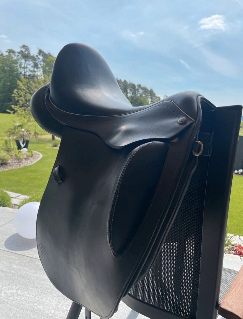 Till salu här en Cordis Latido dressyrsadel i mycket gott skick - Jag säljer min frus 17,5 tums Cordis Latido dressyrsadel i gott skick. Det var på en tysk sporthäst (hingst). Den är i gott skick och är ca 2 år gammal. Kammarens bredd är 33 cm.