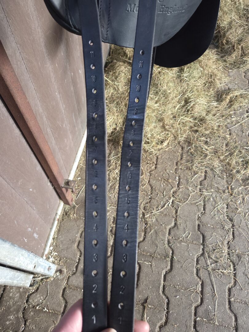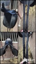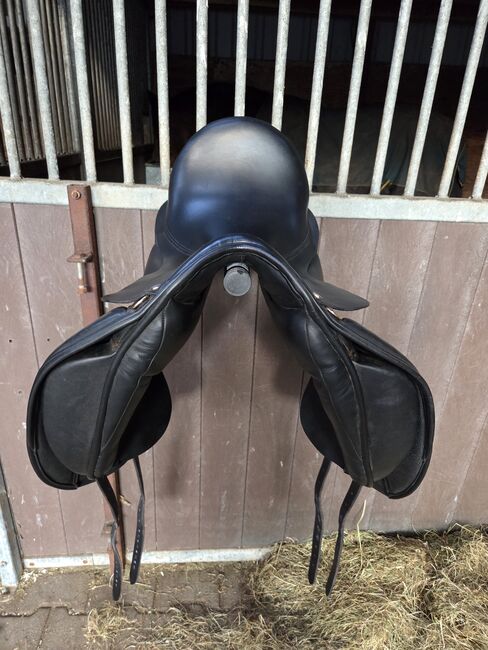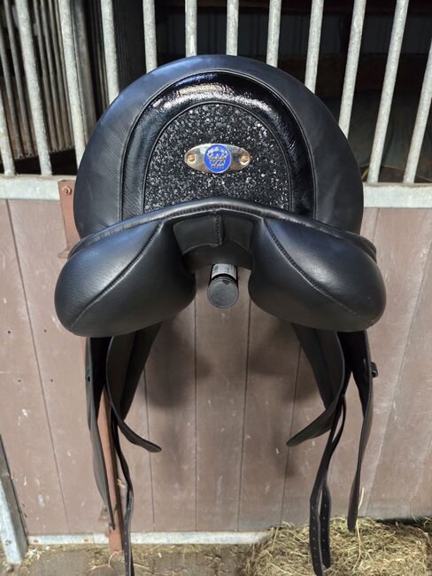 Denna dressyrsadel har en bred trädstorlek, den kan eventuellt göras smalare.