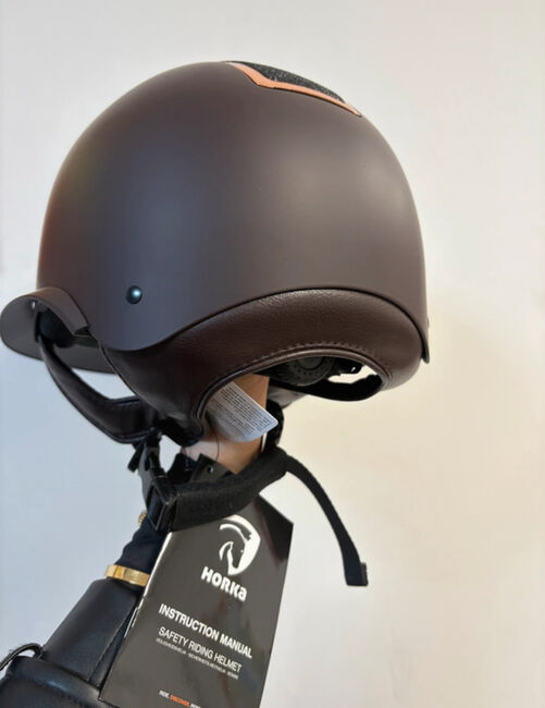 Till salu ny Horka ridhjälm - storlek S (53-56 cm) - Jag säljer en ny, oanvänd ridhjälm från varumärket Horka. Hjälmen var beställd men aldrig använd. Tyvärr var det inte möjligt att returnera den, vilket är anledningen till att den nu säljs. Hjälmen har en högkvalitativ finish, är bekväm och erbjuder en säker passform. Visuellt mycket modern (brun med eleganta detaljer).