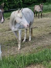 TJ Twisten Sassy - ett vackert Quarter Horse-sto med en sällsynt Cremello-färg, född 21.06.2022. Hon har inte bara ett attraktivt utseende utan övertygar också med en korrekt konformation, en bra grund och en förstklassig reiningstamtavla, vilket gör henne till ett riktigt topputsikter för sporten. Med en förväntad sluthöjd på ca 150-152 cm kommer hon att växa upp i en flock och är bekant med 24-timmars bete. Hon uppfostrades med mycket lugn och omsorg, fick mogna i sin egen takt och är nu ett friskt, robust ungt sto. Hon är 5-panel n/n genom sina föräldrar, regelbundet vaccinerad och avmaskad och är väluppfostrad och okomplicerad hos veterinären och hovslagaren. Sassy har en vänlig, människoorienterad karaktär. Hon är sällskaplig, uppmärksam, hygglig, ibland med en liten gnutta ungdomlig fräckhet - vilket gör henne ännu mer älskvärd. Hennes goda uppfostran och stabila miljö återspeglas tydligt i hennes beteende. Hon har nyligen blivit riden och har redan blivit inkörd. Hon visar talang, ridbarhet och vackra rörelser - en utmärkt grund för reining, ranchridning eller andra westerndiscipliner. TJ Twisten Sassy kombinerar karisma, kvalitet och perspektiv - perfekt för alla som letar efter en speciell unghäst med sportpotential och karaktär. To the seller's offerlaunch
