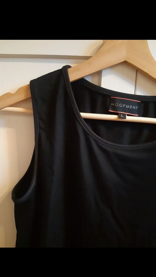 Top Hoofment svart L - Topp från hoofment i svart, storlek L. Ny och oanvänd. Mycket mjukt tyg, figursmickrande, passar 36 löst, bra 38 till 40. Hållbart och rättvist producerad. Nypris 39 €.