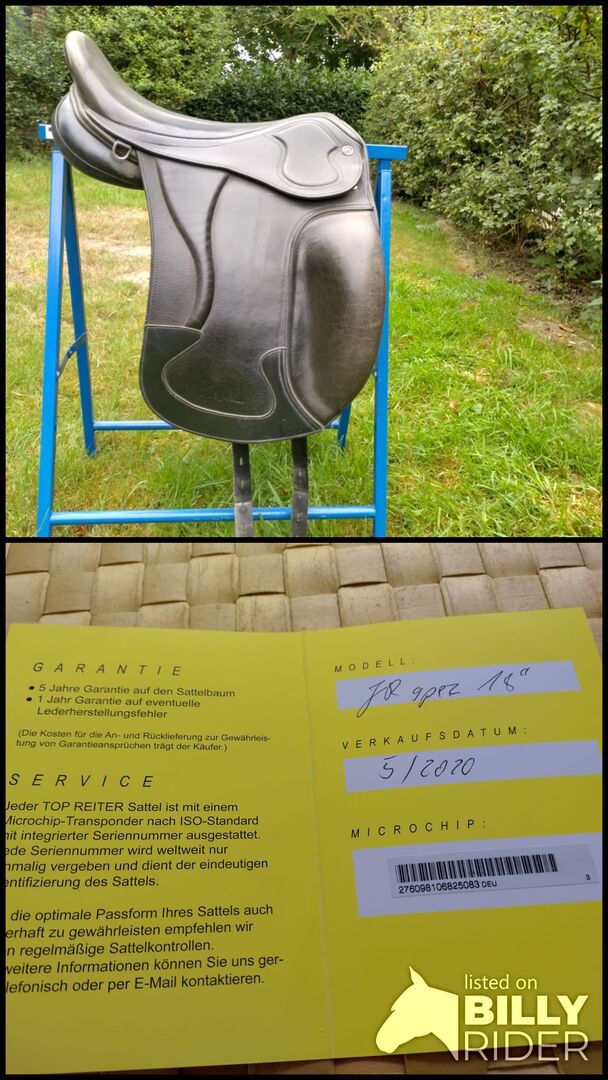 Top rider-sadel JR Special 18", begagnad, 2020 - Till salu TopReiter JR SPEZIAL med ullfyllning, 18" sits - mjukt svängbart sadelkammarträd, följer varje liten böjning av hästen och, tack vare sin generösa frihet för ryggraden, gör det möjligt att tillämpa hjälpmedlen på ett hästvänligt och avslappnat sätt. JR SPEZIAL är särskilt lämplig för hästar med kort rygg. Sadelns tyngdpunkt ligger centralt och ger ryttaren en stabil sittställning tack vare den förhöjda bakre bulben. Tack vare de kraftigt vadderade knävecken förs benet till en optimal position. JR SPEZIAL kan användas inom alla områden av den isländska ridsporten. Med sadelpass, inköpsdatum 05/2020, NP 2800 Euro 1000-- Euro VB Upphämtningsplats 47665 Sonsbeck, frakt möjligt till kostnad. Ingen retur, ingen garanti, som privat försäljning.