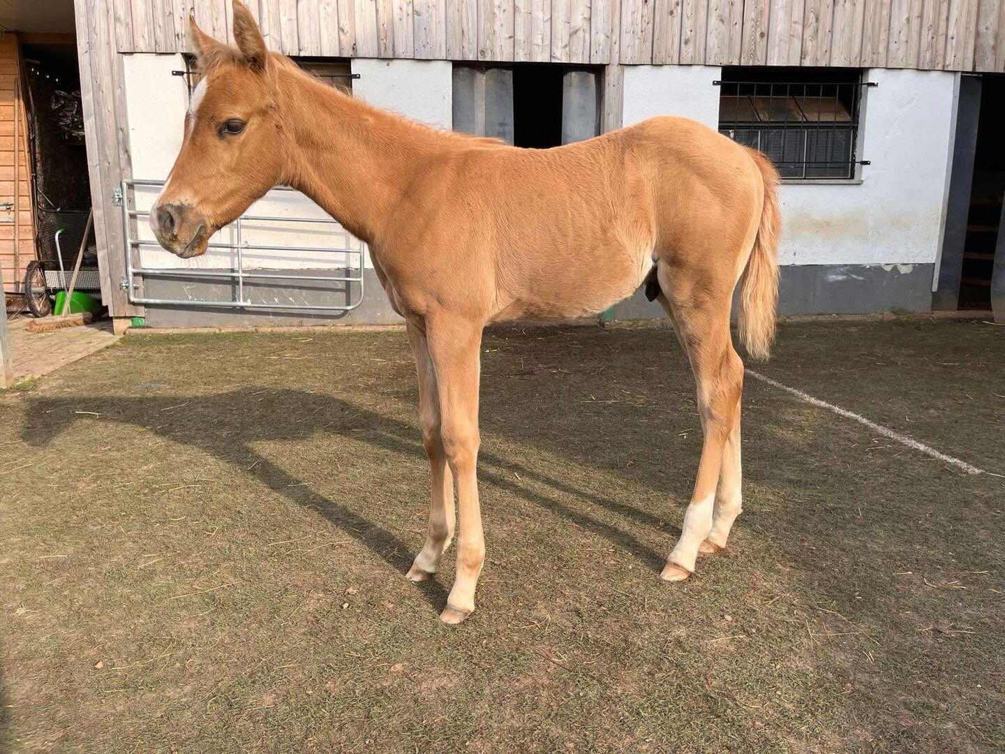 Rosas Little Joe - vacker QH-valack, 2023 med en nuvarande höjd av 148 cm, i den attraktiva Palomino-färgen letar efter ett nytt 5-stjärnigt hem. Joe är en mycket orädd, människoorienterad och välbalanserad unghäst. Han har fått växa upp i lugn och ro i ett öppet stall i flocken och är regelbundet vaccinerad och avmaskad. Inga problem hos veterinär och hovslagare. Han har en korrekt konformation och är redan väl proportionerad. Joe är öppen för allt. Visar mycket bra rörelse. Hans stamtavla talar också till hans fördel. Hans far är den framgångsrikt visade hingsten Ruff Commander (ROM i Reining och Ranch Riding). Joe får sin coolhet från sin mammas sida. Modern har fortfarande Bob Acre Doc på papperet. Den som letar efter en underbar unghäst bör ta en titt på den här pojken. To the seller's offerlaunch