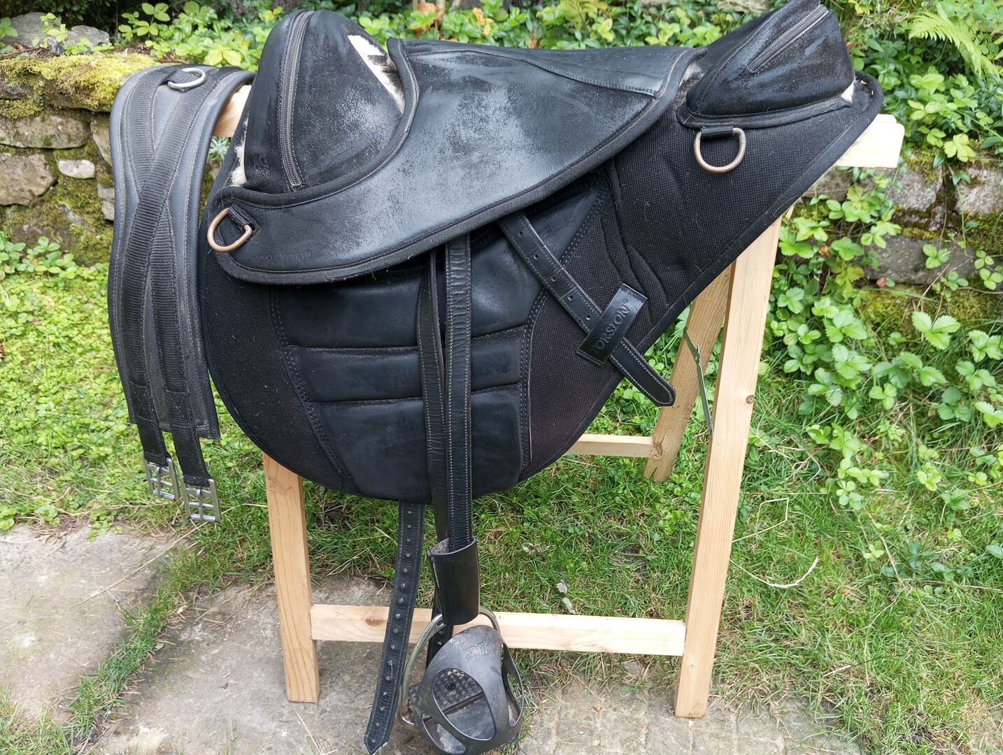 Torsion trädlös sadel - Min häst och jag har gått i pension, så vi säljer vår sadel som visas på bilderna. Den har tecken på användning, men inga skador. Den är inte heller polerad till en hög glans, så du kan se skicket bäst.