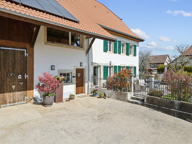TOTALRENOVERAD HÄSTGÅRD I IDYLLISK MILJÖ FÖR PRIVAT HÄSTHÅLLNING - Denna exklusiva hästgård ligger inbäddad i den idylliska landsbygden i kantonen Jura och erbjuder en sällsynt möjlighet att kombinera boende och hästhållning. Den unika kombinationen av en renoverad bondgård av hög kvalitet, genomtänkt infrastruktur för hästar och de hisnande omgivningarna gör denna fastighet till en dröm för alla hästälskare.
