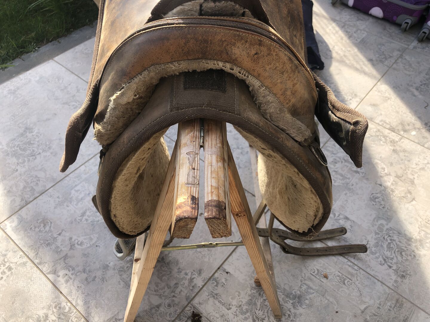 Trädlös sadel i brun färg - Begagnad trädlös sadel i brun färg.