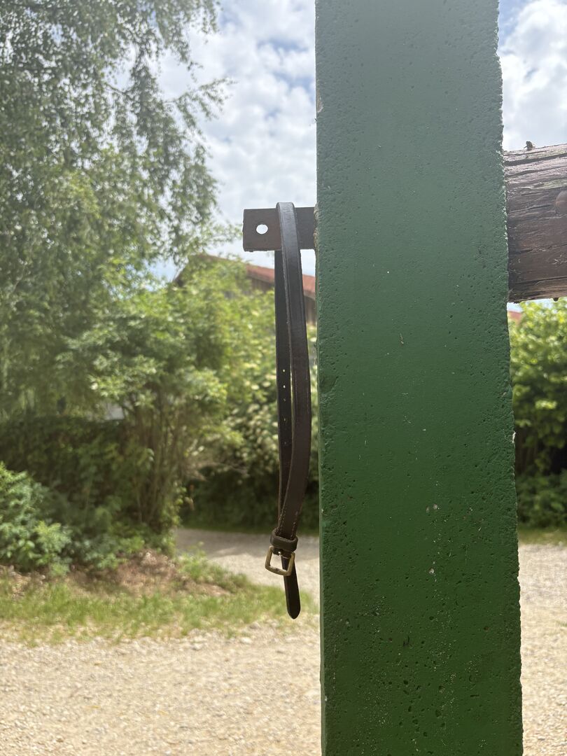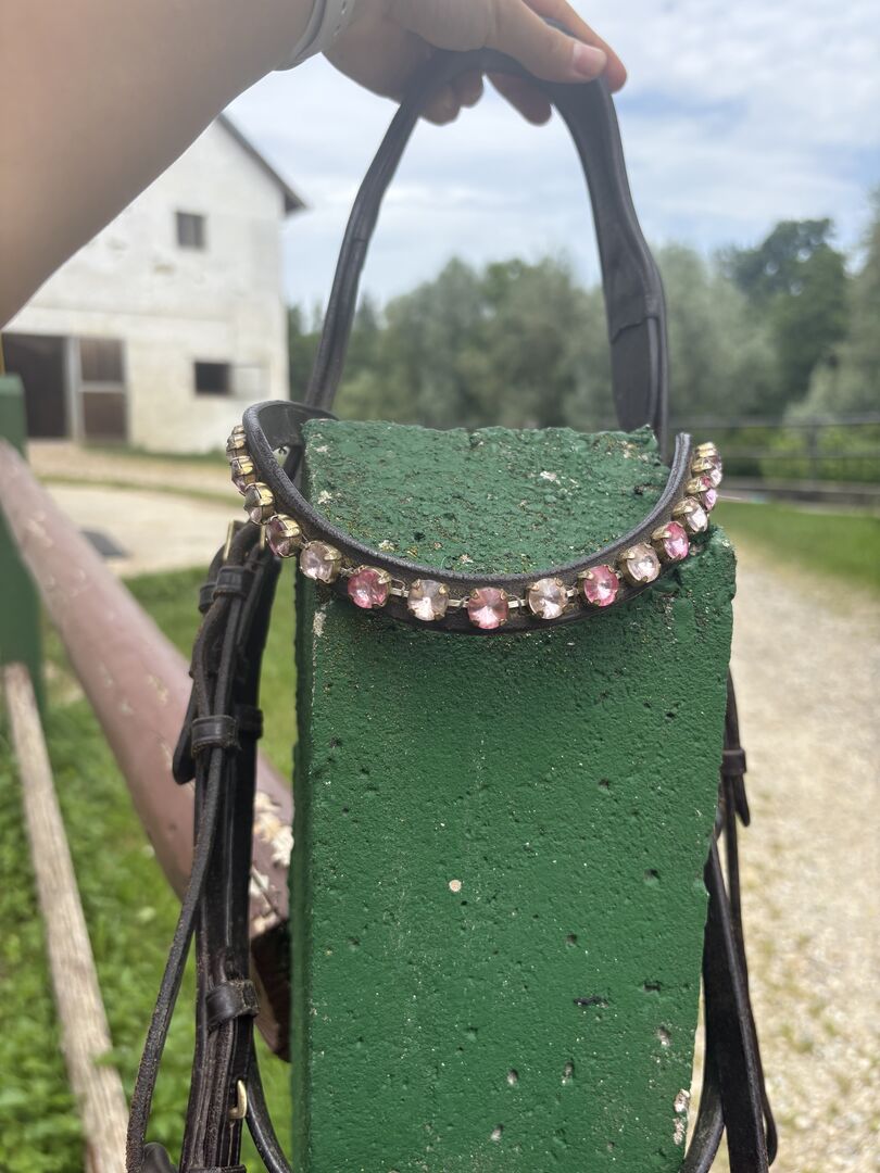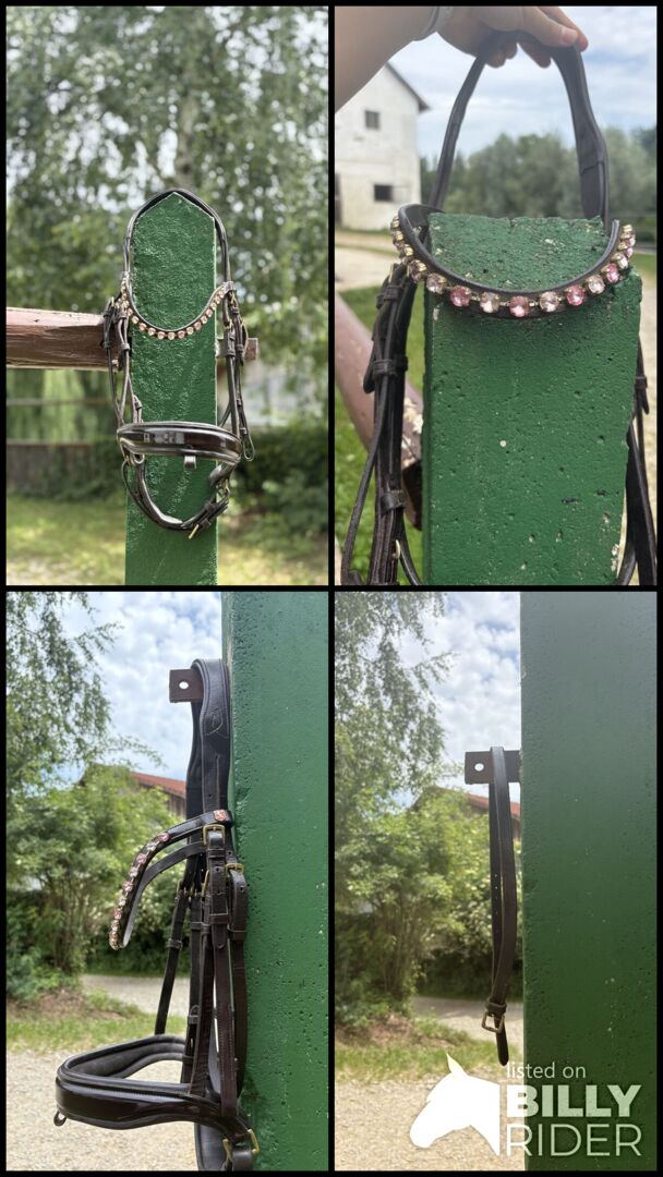 Tränset användes med nöje. Det har normala tecken på användning och är därför i gott skick. Tränset säljs med tyglar och flash strap.