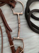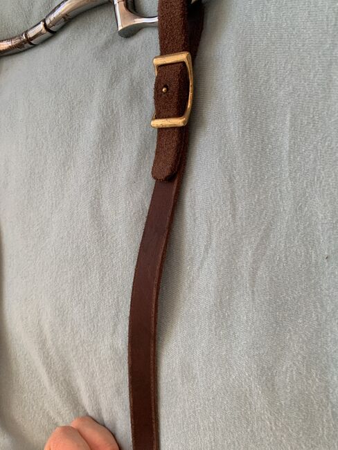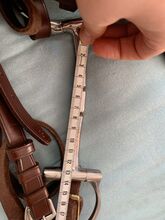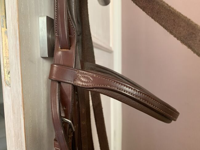 Uppsättningen inkluderar: - Huvudgrimma tillverkad av mjuk, mörkbrun mocka - Bett inklusive 13 cm - Tyglar med en längd på ca. 3 m - 3,10 m - Enkel, slät finish