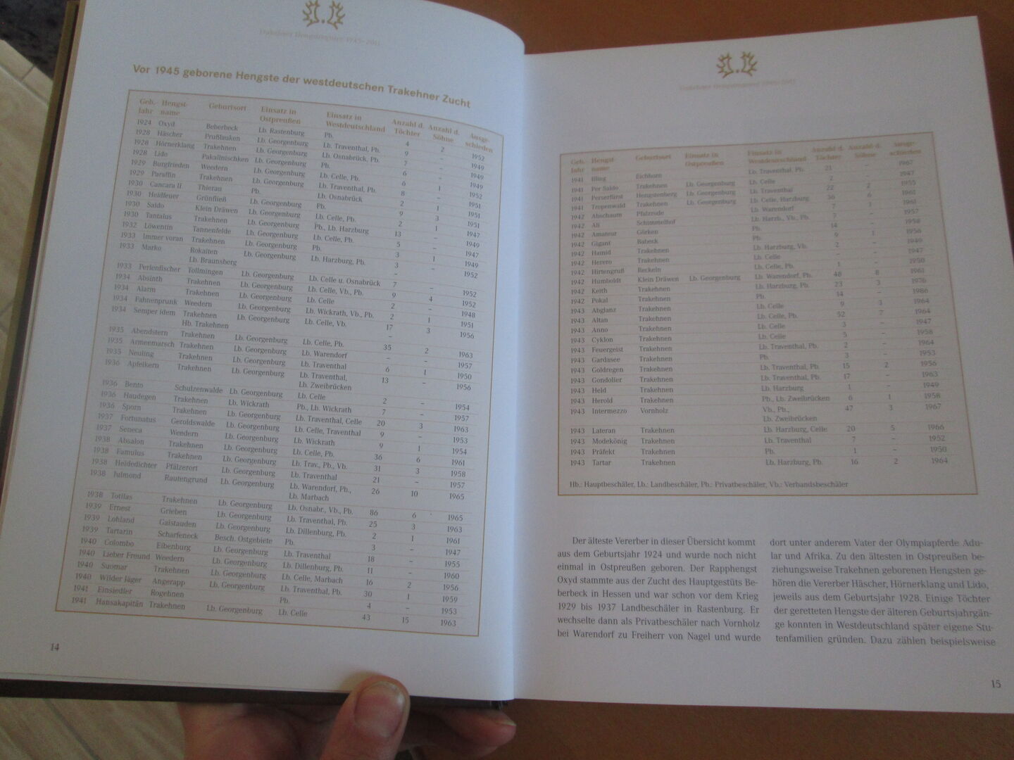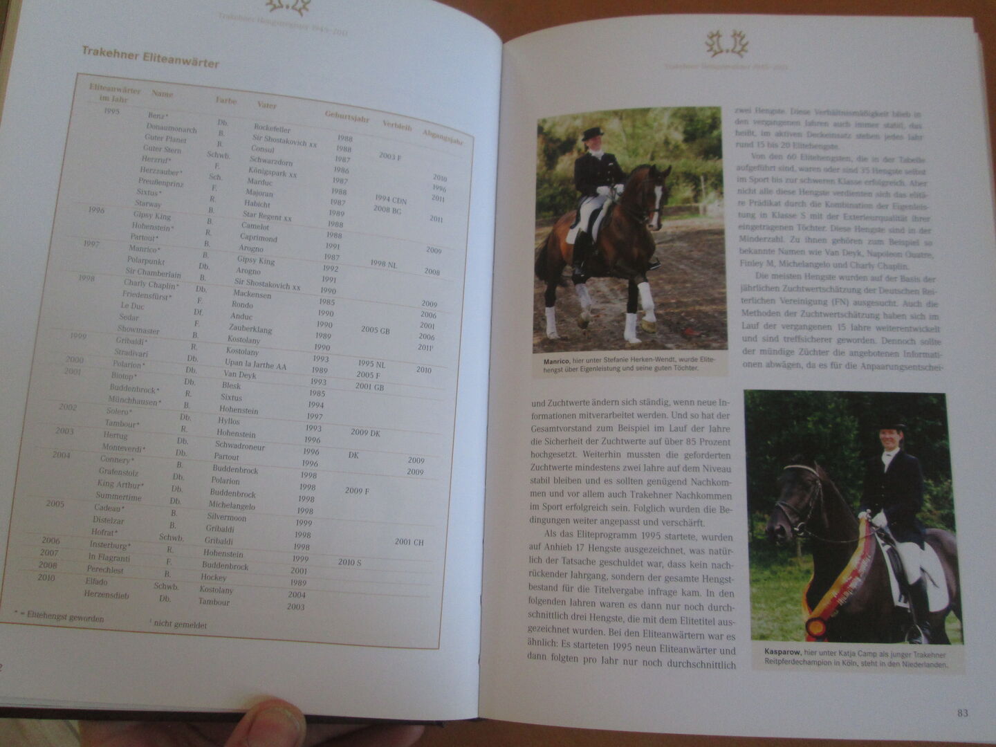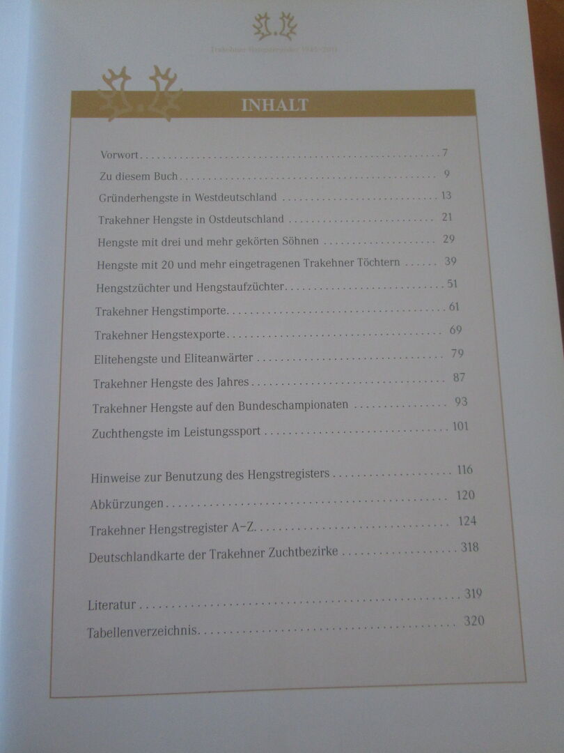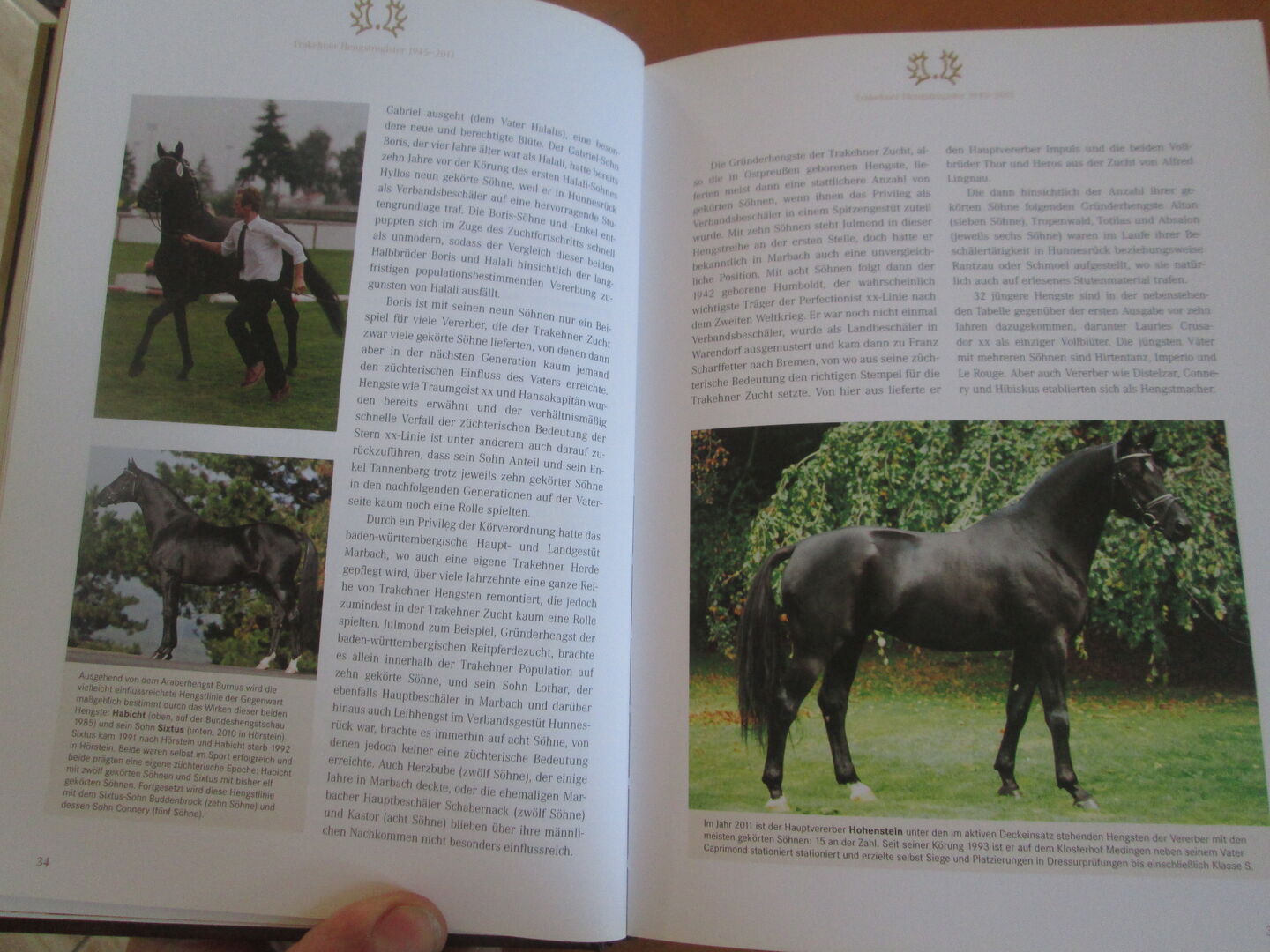 Dessutom har Lars Gehrmann, avelsdirektör och verkställande direktör för Trakehner Verband, tillsammans med Anne-Rosa Gusovius sammanställt rikt illustrerad information om hingstar som är särskilt viktiga för aveln av rasen i den främre delen av boken.