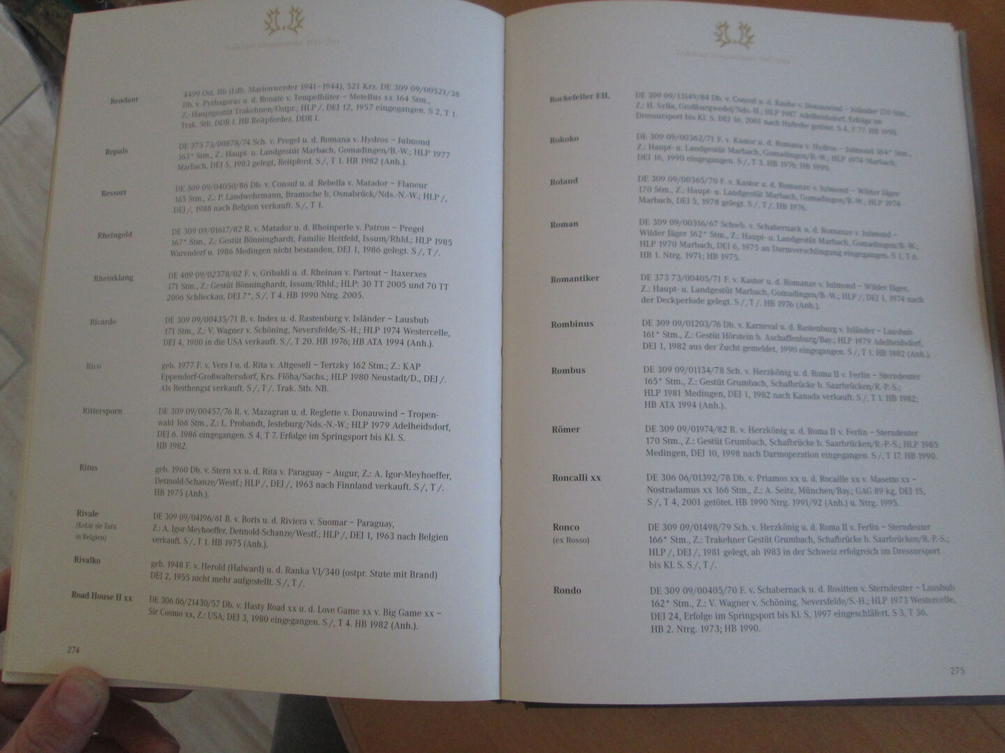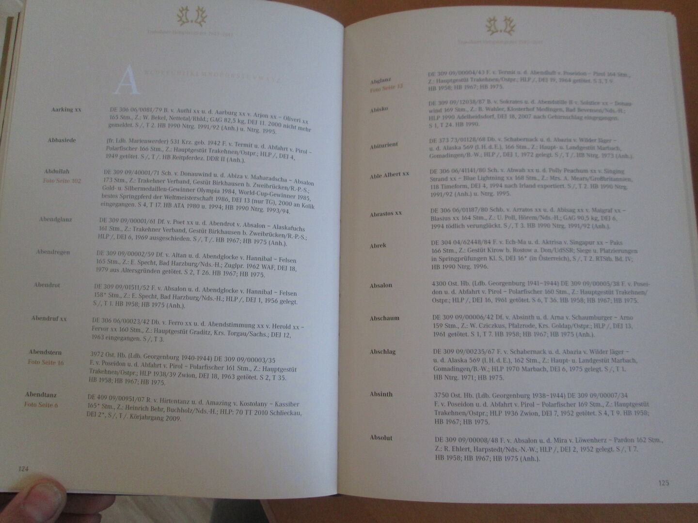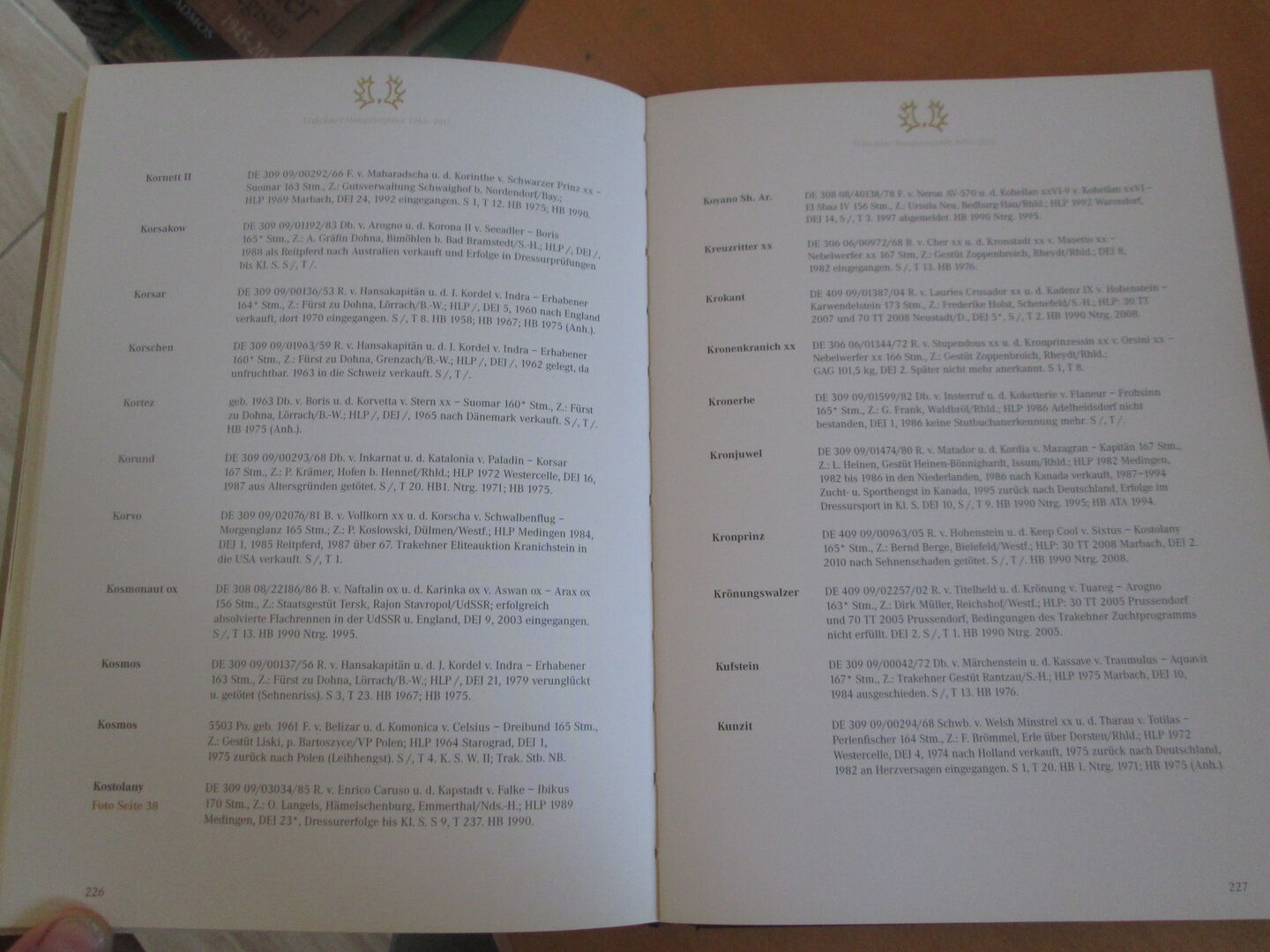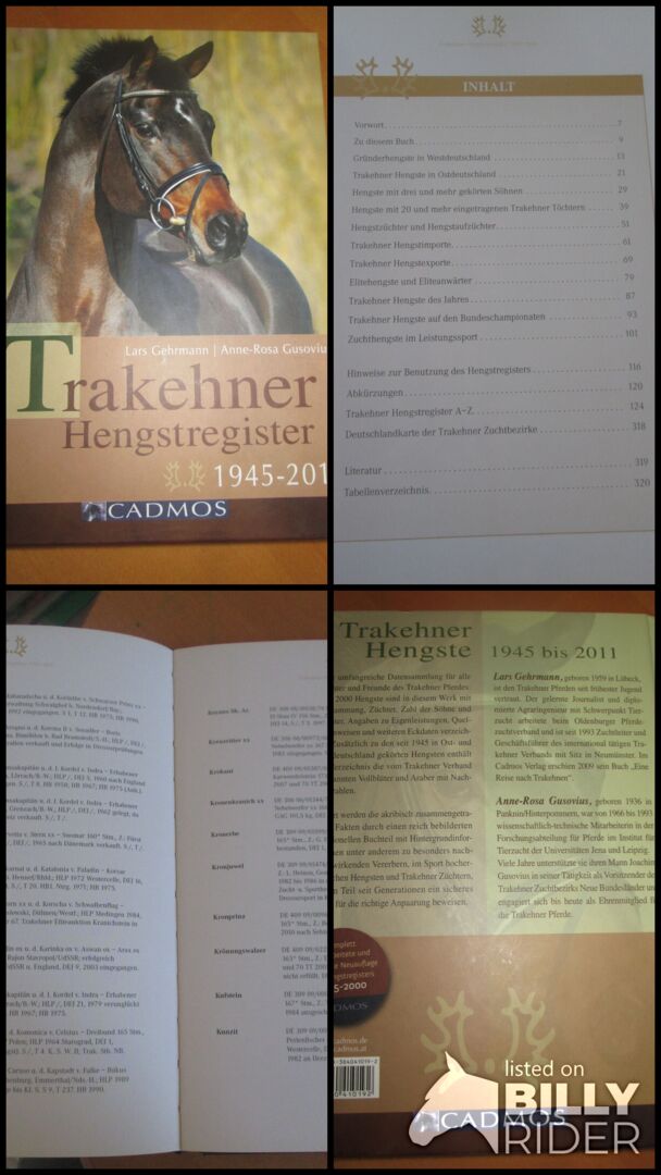 Trakehner Hingstregister 1945 - 2011 Cadmos Gehrmann Gusouvius - Till salu är en referensbok i nyskick av unikt värde: I boken finns en förteckning över alla Trakehner-hingstar som användes för avel mellan 1945 och 2011. Det finns mycket information om varje hingst som är relevant för uppfödare och alla som är intresserade av trakehnerhästar.
