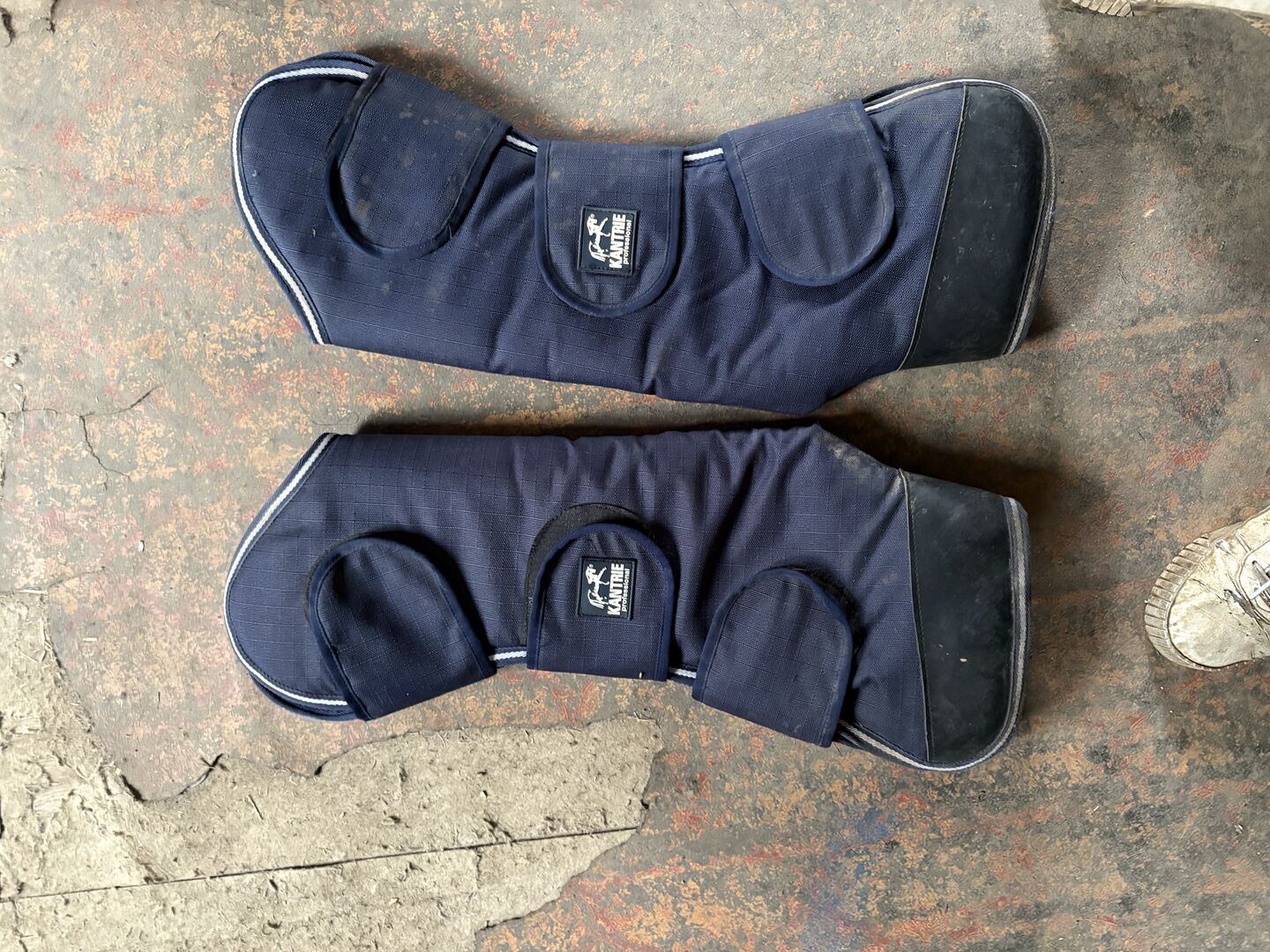 Verkaufe gebrauchte Transportgamaschen WB in Blau