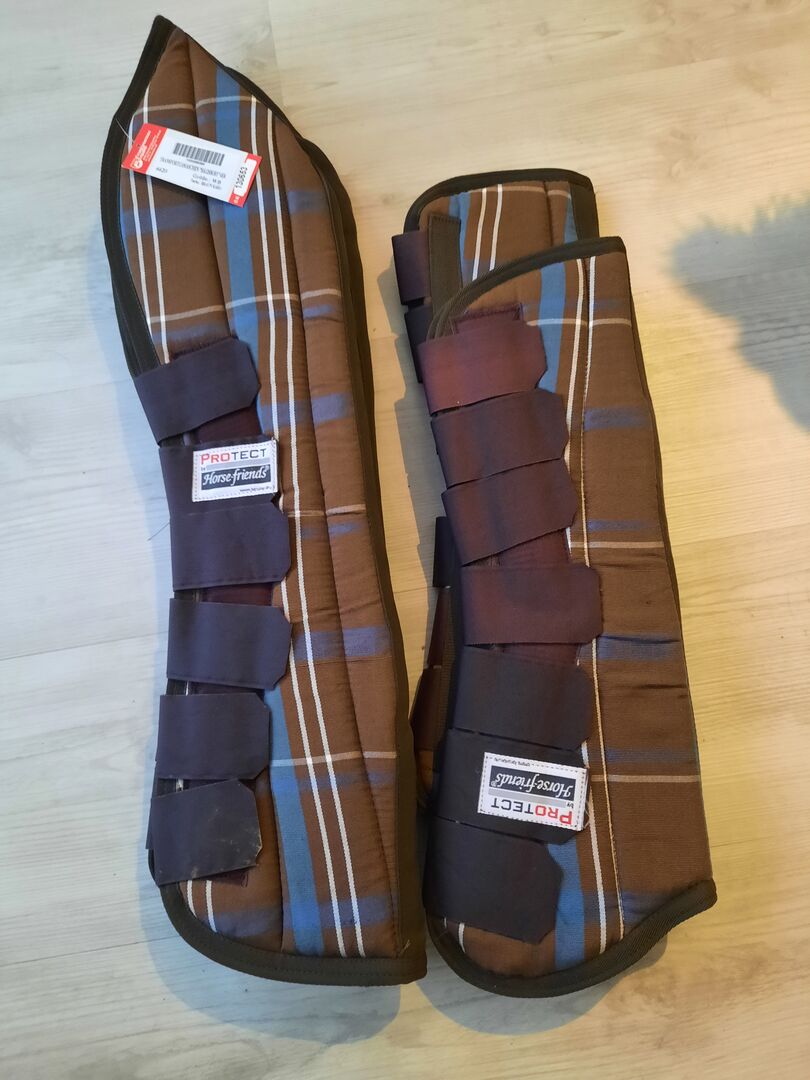 Transport damasker - Säljer en uppsättning av 4 nya transportstövlar med väska. Storlek WB, se etikett. De har bara suttit på hästen en gång, för provning.