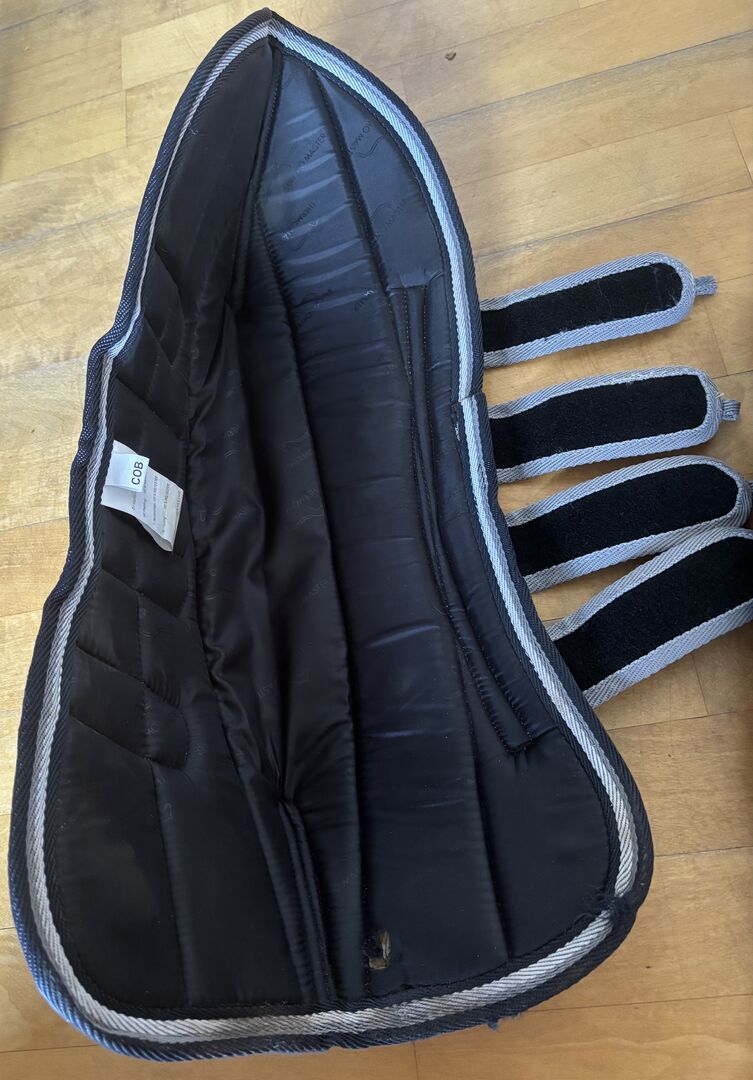 Transport damasker Thermo Master COB - Jag säljer mina COB transportstövlar från Thermo Master i mycket gott skick. Köptes för att flytta min häst, men användes bara en kort stund för att öva (max 60 minuter). De användes inte för själva transporten. Tyvärr lossnade en del av tyget på en damasker under träning, vilket kan ses på bild 3 nedan. I övrigt är de som nya. Den ursprungliga förvaringsväskan finns också med.