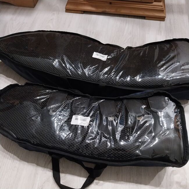 Transport leggings - BUSSE transportstövlar 3D Air Effect varmblod fram och bak i färg svart. Damaskerna provades bara en gång på hästen, men användes aldrig. Därför som nya. Nytt pris januari 2025 167,00 EUR