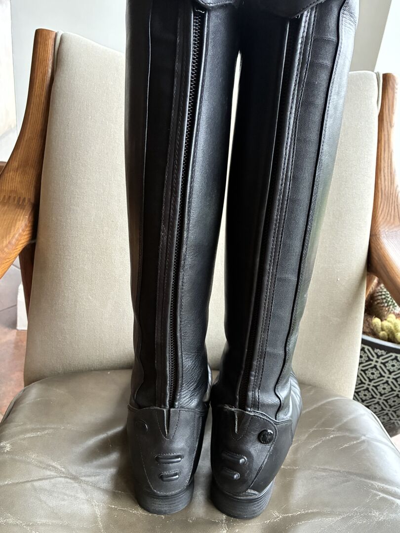 Tredstep boots are known for quality and durability. This pair is less than a year old and has rarely been used. (I gave up show Jumping due to back issues). The Sirani model is made of premium leather and very comfortable. They are size EU 39 / UK size 6. regular height and regular calf width. The come with inner supports and a spare pair of laces.