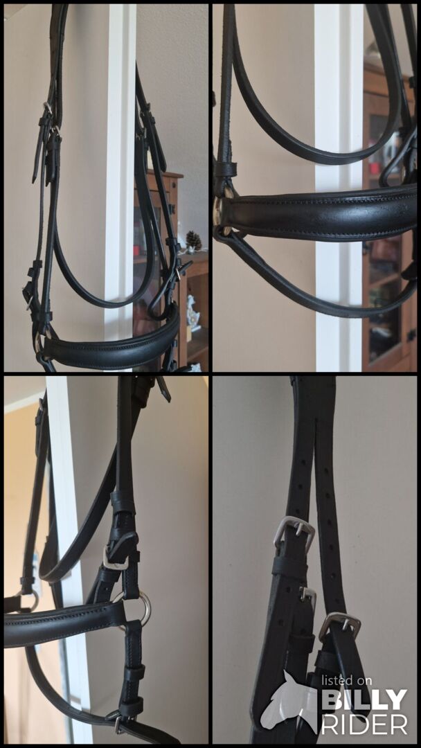 TRENSE WB-XL/Reins LED SVART NY - Träns bestående av ett mjukt vadderat anatomiskt huvudstycke, nosgrimma och matchande tyglar.