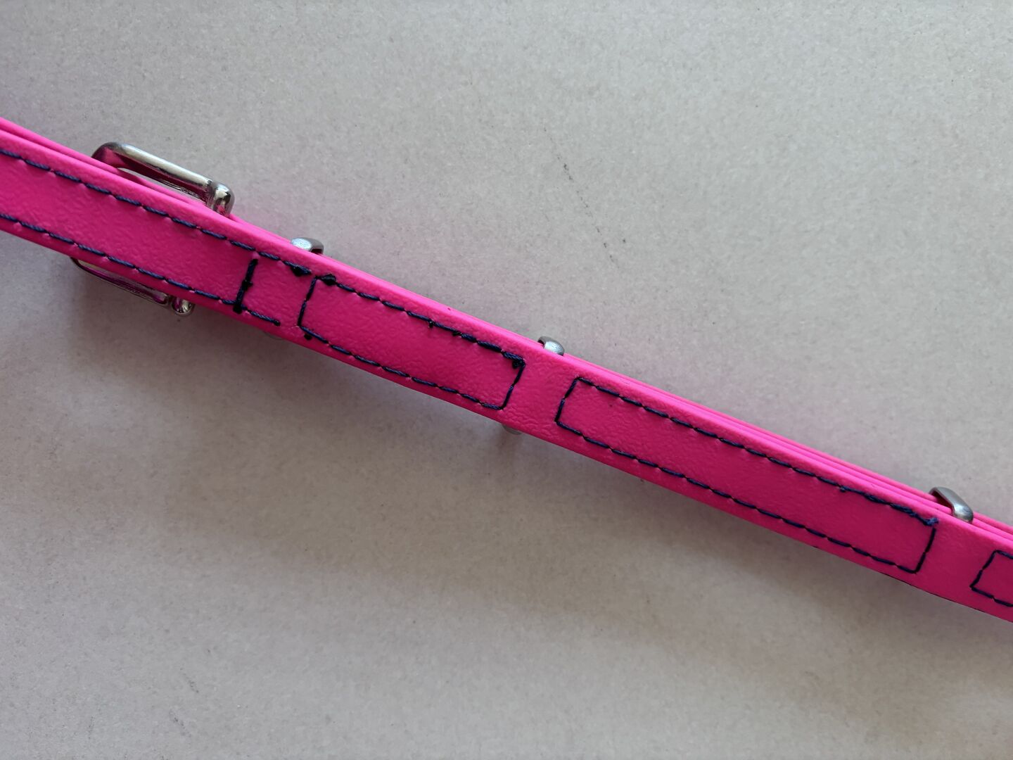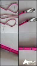 Triangulära tyglar i rosa - Till salu vackra triangulära tyglar Grundfärg: Magenta Kontrastsömmar: Marinblå/dunkelblå Storlek: Fullblod/Cob Bredd: 16mm Beslag: Silver