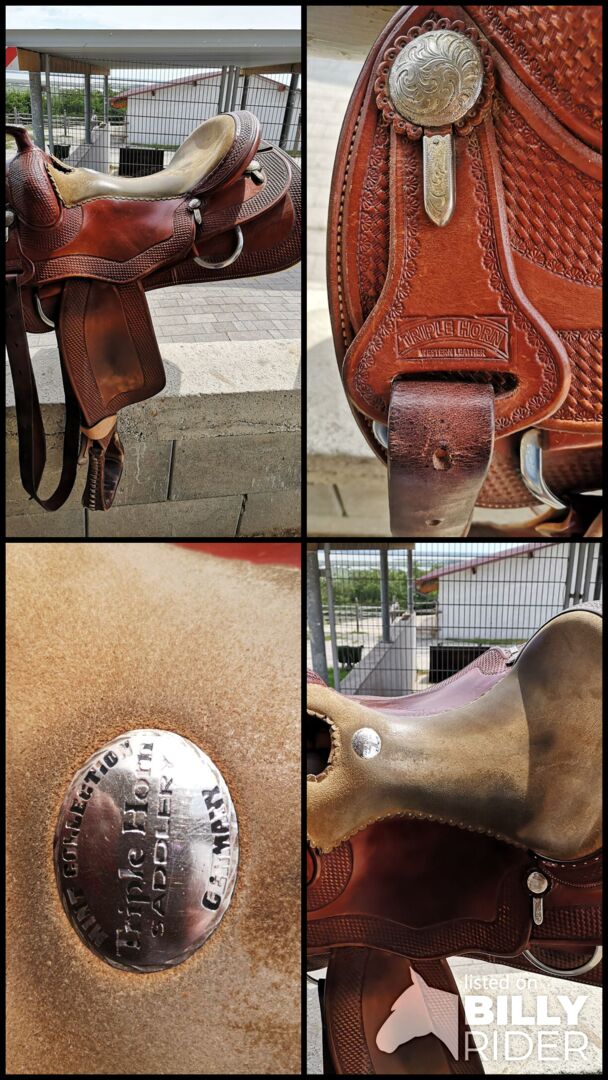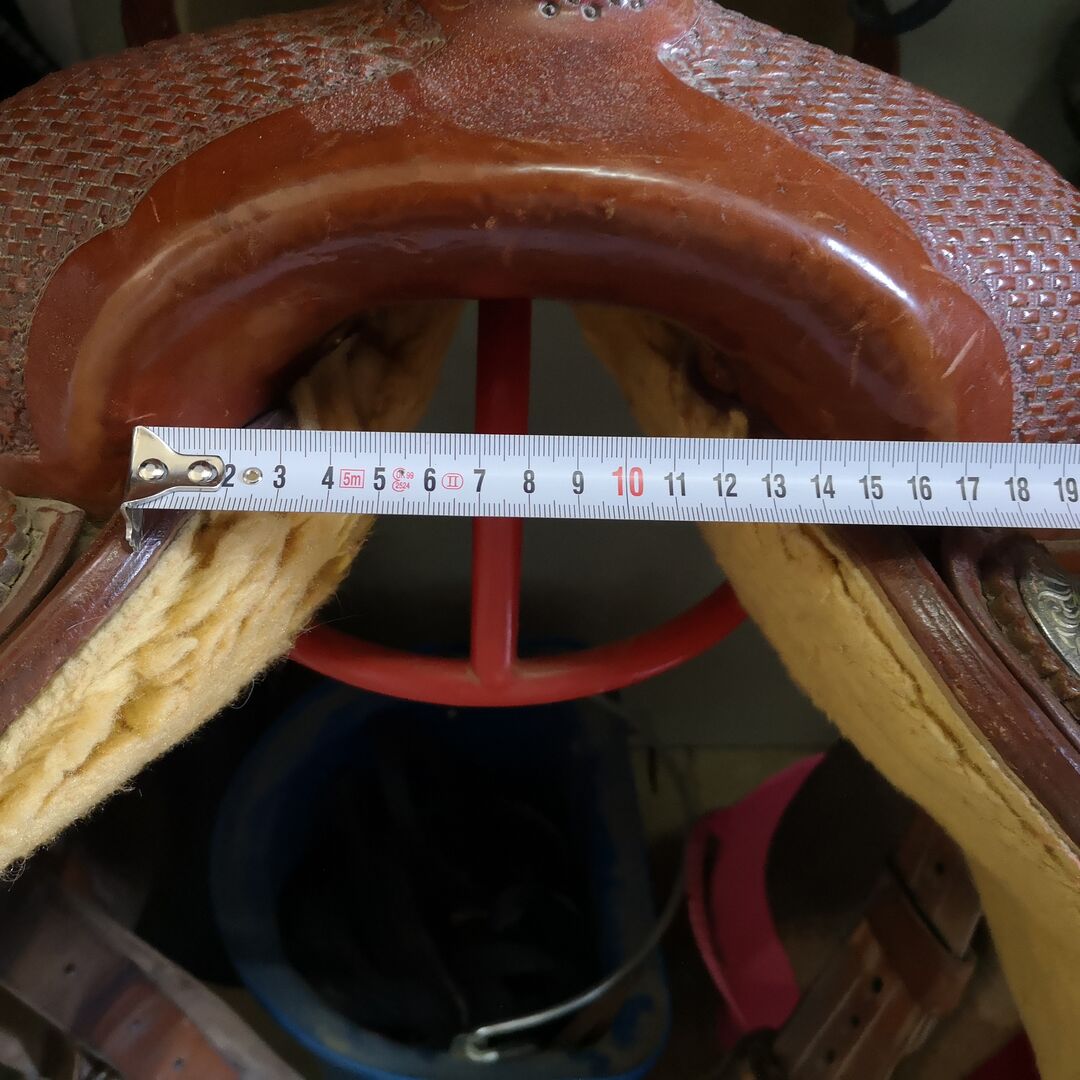 Ridit på en Warmblood-Quarter-Mix med en höjd på 160 cm och normal svankhöjd.
