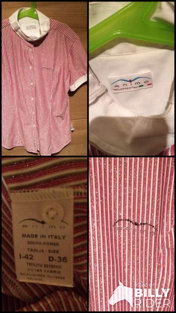 Turneringsblus Animo - Sälj Animo showtröja i rosa/lila glitter, stretch, mycket bekväm att bära, luftgenomsläpplig. Endast använd 1x