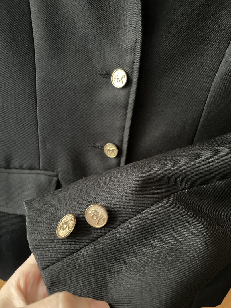 Turneringsjacka med sammet - Jag säljer min jacka med sammetskrage och supersöta knappar. Jag har bara använt den själv på en jakttur.