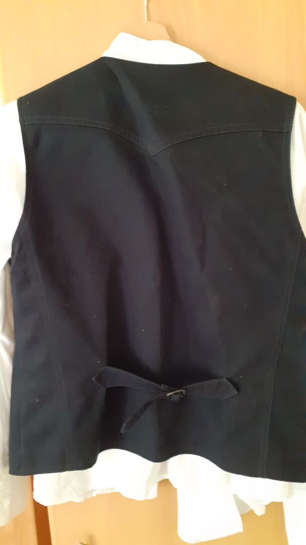 Turneringsklädd väst unisex med silverfärgat paisleyfoder mörkblå//// Wrangler skjorta lång S/M röd - Väst slitstark knytning baktill, vacker knappslå foder chic i silver .... !! WRANGLER skjorta röd faktiskt herr perfekt lång nog till jeans. Välbevarad och fyllig röd utan krusiduller ;) 20€ ensam eller tillsammans med väst 65€ inkl.frakt. Inget byte eller retur tydlig privat försäljning .