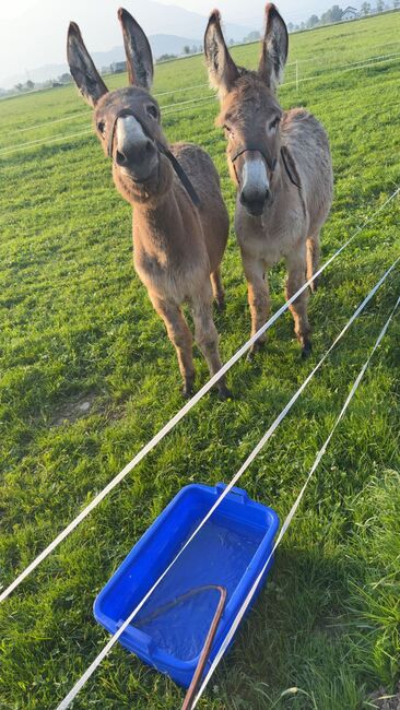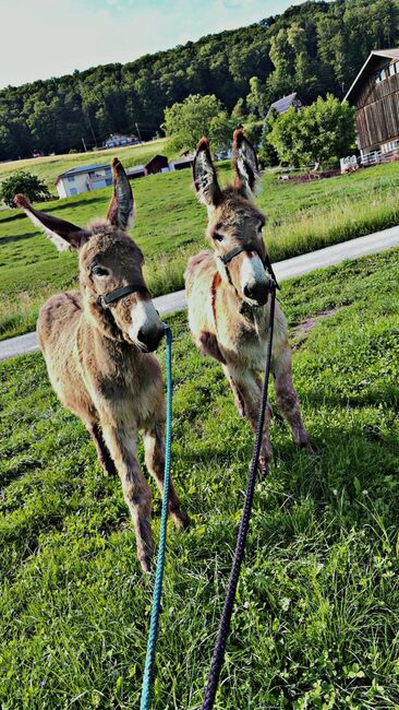 Två åsnehingstar till salu - Två unga åsnehingstar Emil och Nick till salu. Båda är mycket tillitsfulla och tillgivna. Båda åsnorna är vana vid grimma och promenader.