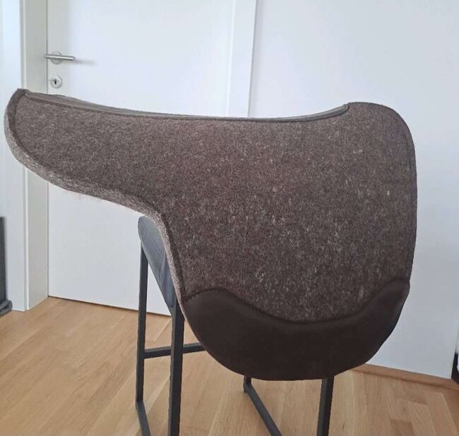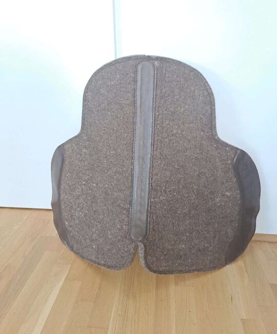Idealisk för långa ridturer: Högkvalitativ, stötdämpande och, tack vare naturfibrer, särskilt andningsbar pad av ullfilt med en mjuk undersida av merinoull och skyddande läderbesättningar i sadelgjorden och längs rygglinjen. Den anatomiska formen med en fördjupning i mankhöjd skyddar mot skav. Utskärningen på baksidan minskar den yta som täcks av dynan och möjliggör därmed en hälsosam svettning. Lämplig för Endurance-sadlar utan paneler (kontaktyta som Western-sadlar). Längd 62 cm, djup 48 cm, tjocklek ca 2,9 cm. 100 % ullfilt.