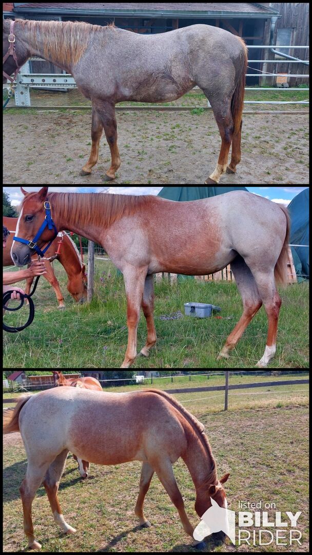 underbar dotter till Unxpected - Supersött och mycket härligt Quarter Horse-sto med förstklassig allroundstamtavla söker en tvåbent kompis som hon kan lära sig mycket av och upptäcka nya saker tillsammans med. Hon är född 5.2022 och förväntas nå en slutlängd på 155 cm. Peppa växer upp under de bästa förhållanden i en flock med ston. Kan allt du behöver veta. Hon är haltertränad, fin hos veterinär och hovslagare och är lätt att hantera. Hon har en fantastisk, kärleksfull karaktär, är mycket vänlig mot människor och villig att lära sig. Visar bra grundläggande gångarter. Stoet är friskt och har aldrig varit sjukt. Stoet har en mycket bra allround stamtavla. Hennes far är QH-hingsten Unxpected, en RL Best Of Sudden-son. Tyvärr visades han inte på grund av en skada. Peppas mamma är ett Wieskamp uppfött sto. Hennes far är CL Skip Like Spanish. Hon är registrerad i stambok 1 och var utställningsvinnare. Peppa lovar att bli en bra partner för utställningen, men också idealisk som fritidskompis.