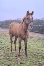 Ungt toppsto med unik avelsstamtavla i Europa - Plats: 54668 Echternacherbrück Sun O Lena Chexinic är ett vackert Quarter Horse-sto, född 20.07.2025, med en beräknad sluthöjd på ca 150 cm. Hon är red dun och homozygot dun, har sina AQHA-papper och är registrerad hos DQHA. Stoet imponerar med sin korrekta exteriör, fina färg, goda utveckling och balanserade muskulatur. Hon är frisk, regelbundet avmaskad och växer upp i en flock. Hon är bekant med veterinären och hovslagaren. 5-panel n/n. Hon är haltertränad och kan fölning 1×1. Hon är mycket söt, människoorienterad och väluppfostrad. Hon är lyhörd, har ett härligt temperament, är mycket atletisk, vill alltid vara till lags och lär sig snabbt, vilket gör henne till en spännande unghäst. Med sin skärande stamtavla, som är sällsynt i Europa, är hon ett förstklassigt prospekt för sport, tävling och avel och med sin potential för skärning bör hon definitivt främjas som en showhäst senare. Hon är dotterdotter till Doc O Lena och Bueno Chexinic. Ett ungt sto med mycket kvalitet, karisma och prestationsvilja som är mycket intressant för både ambitiösa ryttare och uppfödare.