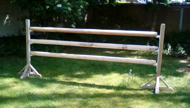Uppsättning av hinder - Super jump set....bestående av 6 lätta trästativ ca. 1,45m i naturen ...3 x cavaletti ca.2,90m natur006 stolpar ca. 3 m natur och 12 stöd allt nytt !!!