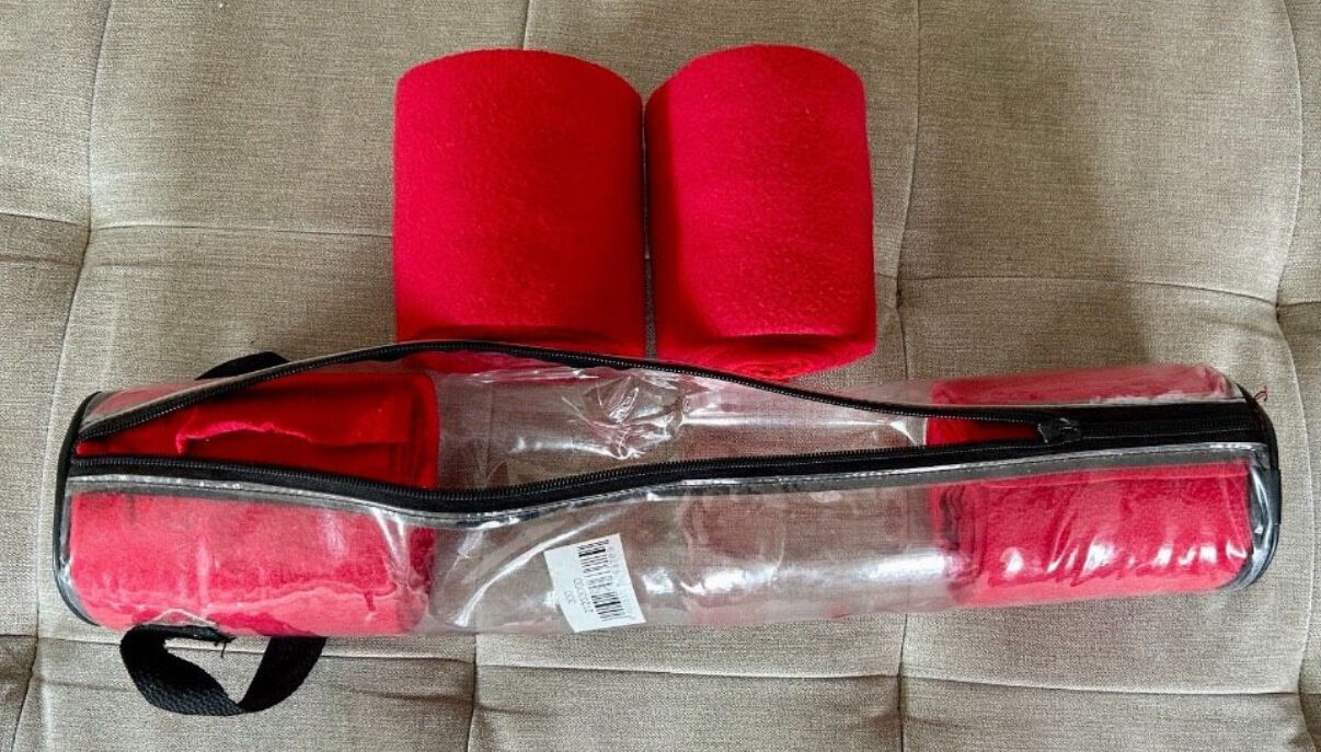 Uppsättning med 4 fleecebandage WB - Perfekt skick, inklusive förvaringspåse (denna har en liten reva). Icke-rökande hushåll.