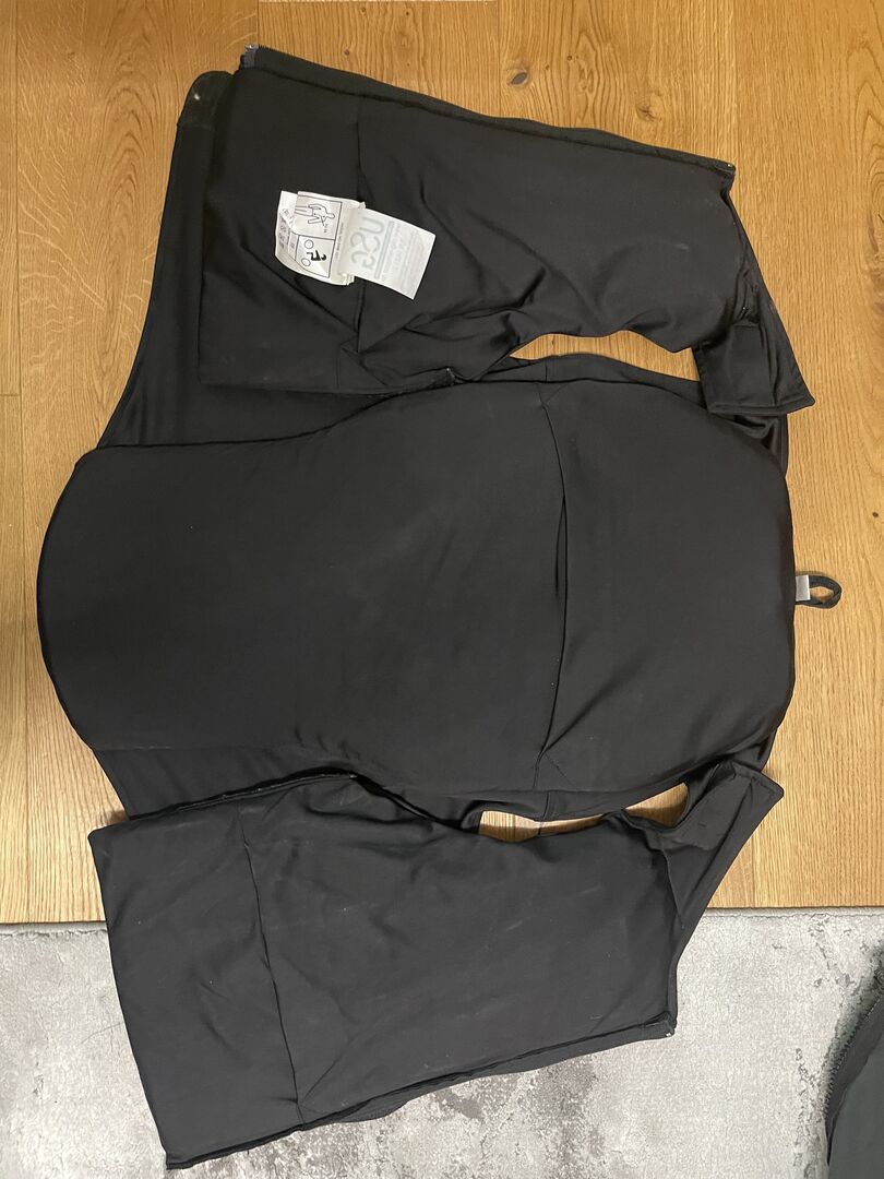 Den integrerade dragkedjan gör det enkelt att ta på och av den. Kardborreknäppningarna i sidoområdet och på axeln gör att skyddet kan justeras optimalt och kontinuerligt. Den kan utan problem bäras över eller under en jacka. Kardborreknäppningarna på sidorna och axlarna gör att skyddet kan justeras optimalt och kontinuerligt.