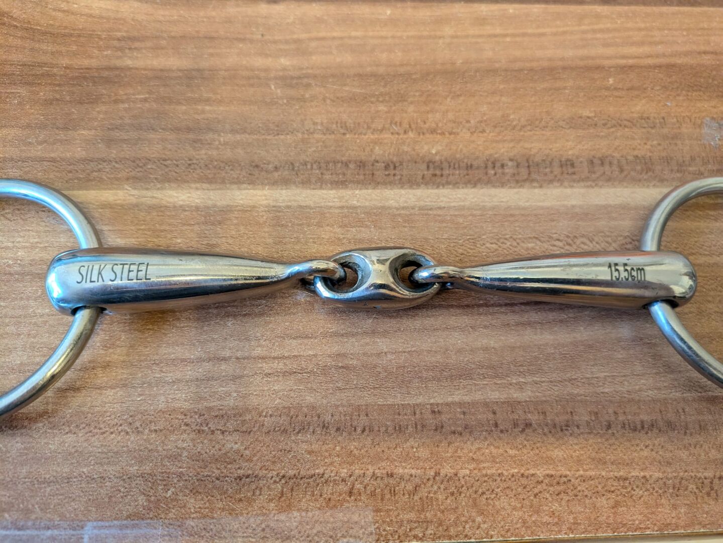 Utbildning bit dubbelbruten - Här erbjuds ett dubbelledat träningsbett från Silk Steel i storlek 15,5 och en tjocklek på 14 mm.