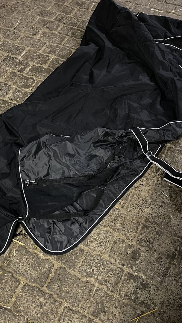 Utomhusfilt med fleecefoder - Ny svart matta med fleece inuti i storlek 165/215, med korslagda överdrag och en svanslucka.