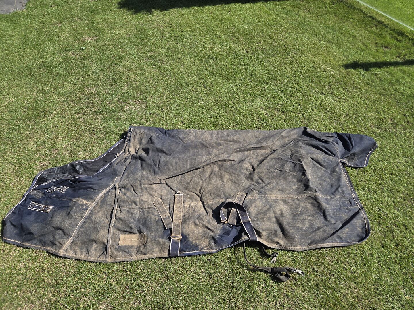 Utomhusmatta 200g 155 cm inkl. halsdel - Matta med få bruksspår, tät och fullt funktionsduglig, inkl. nackstycke. Möjlighet att fästa en inre matta. Plus fraktkostnader