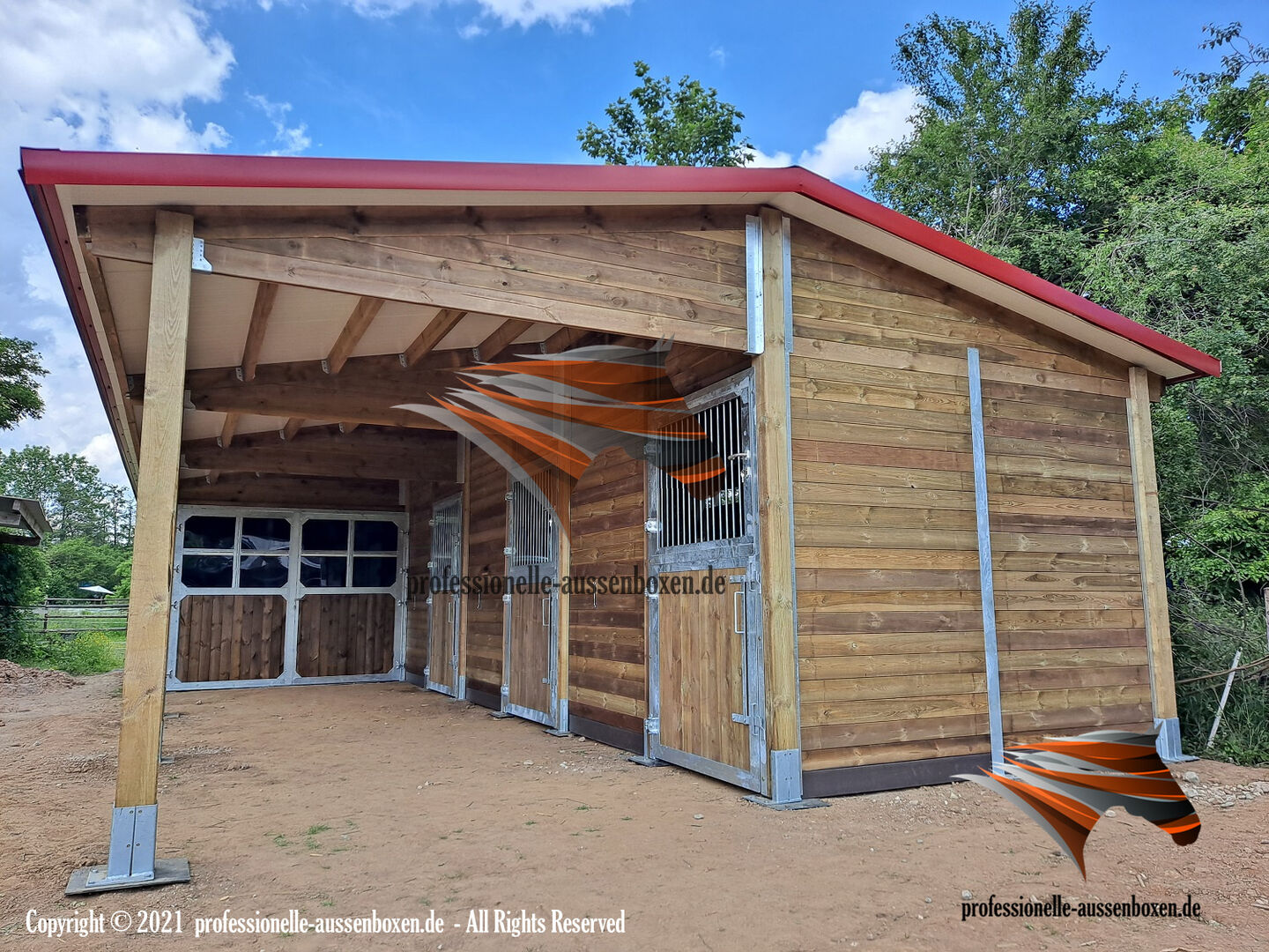 Utomhusstall - Bygg ett stall, köp ideala stall & öppna stall | Stallbyggnad - Webb: www.professionelle-aussenboxen.de