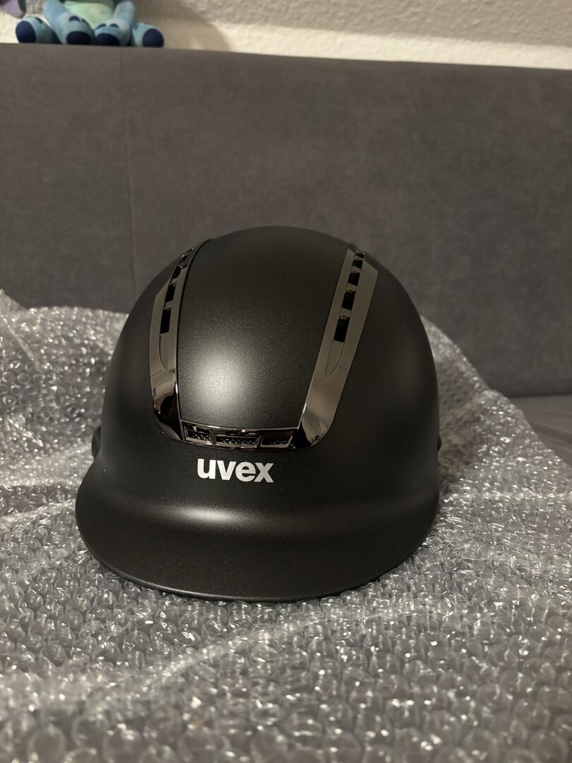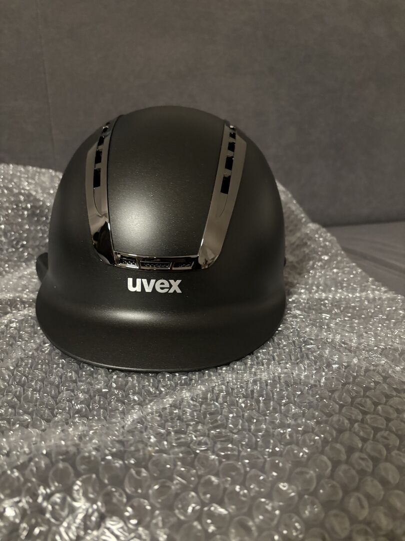 Uvex Suxxeed svart - Jag säljer en ny och oanvänd UVEX Suxxeed Chrome ridhjälm i den eleganta färgen svart matt-silver. Hjälmen har aldrig använts, har inte tappats och är i sitt ursprungliga skick.