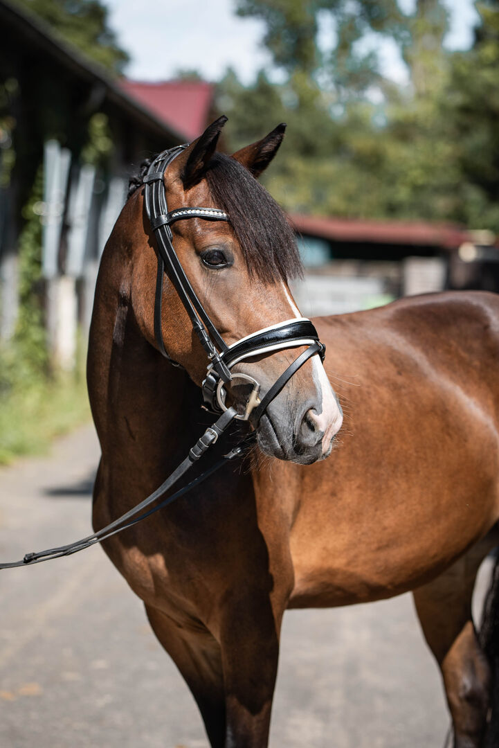 Vacker barnponny med exceptionell karaktär! - Flamme är ett 3,5 år gammalt, 1,38 m högt ponnysto med en attityd och en karaktär av guld. Hon vet hur man arbetar med barn och var till och med en del av vårt ponnyläger under sommarlovet. Hon kan ridas både fritt och i ridhuset, med och utan bett. Hon är otroligt villig att lära sig och är alltid intresserad av dig. Hon är också ett säkert kort i terrängen. Traktorer vid skörden, trafikerade vägar och vatten är inga problem för henne. Hon kan åldersanpassade hopp, banor och terränghopp och älskar att göra dem också.