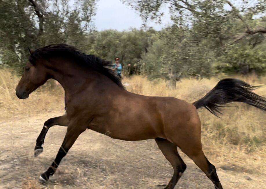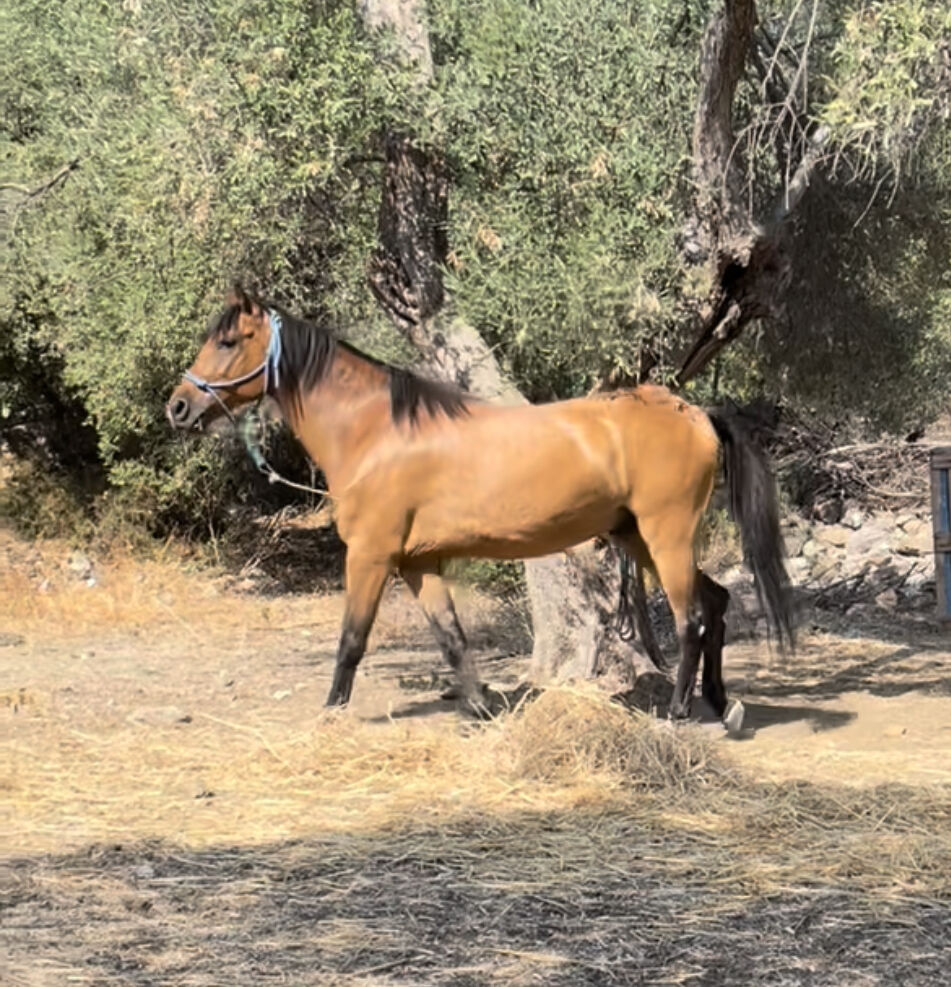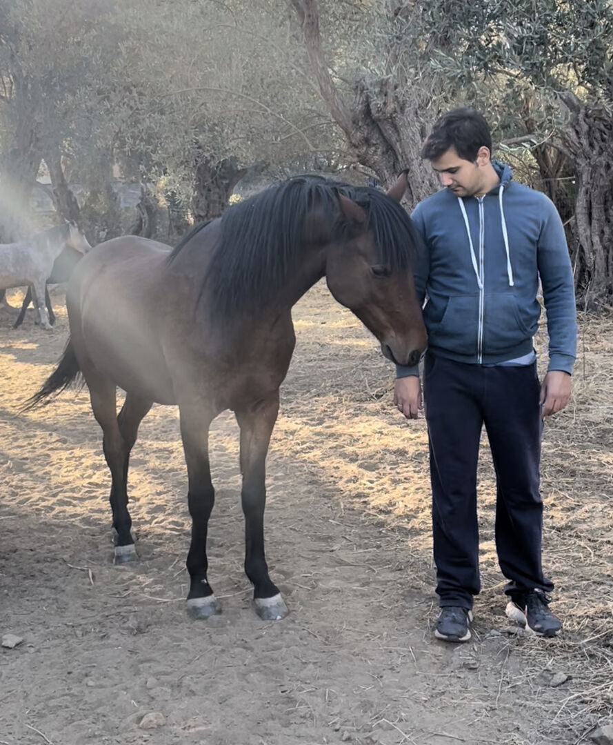 Han är en blandning av engelskt fullblod (ca 40 %) och grekisk aravaniponny.