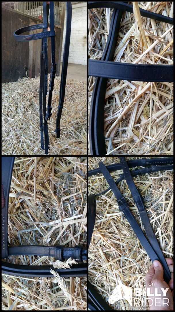 Sell my used but very well preserved black leather bridle with reddish brown accents and light stitching. The bridle is Portuguese style (without noseband). The leather is especially high quality and soft. Size FULL.