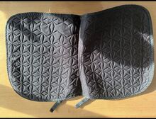 Jag säljer ett mycket vackert VS-sadelpad i rosa, dekorerat med en elegant grå cordkant och en vit kant.