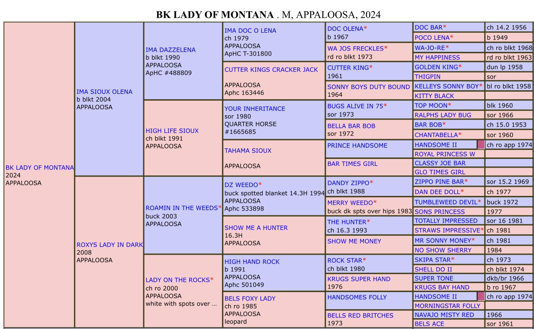 Hennes far är vår Ima Sioux Olena, mor: Roxys Lady in Dark.