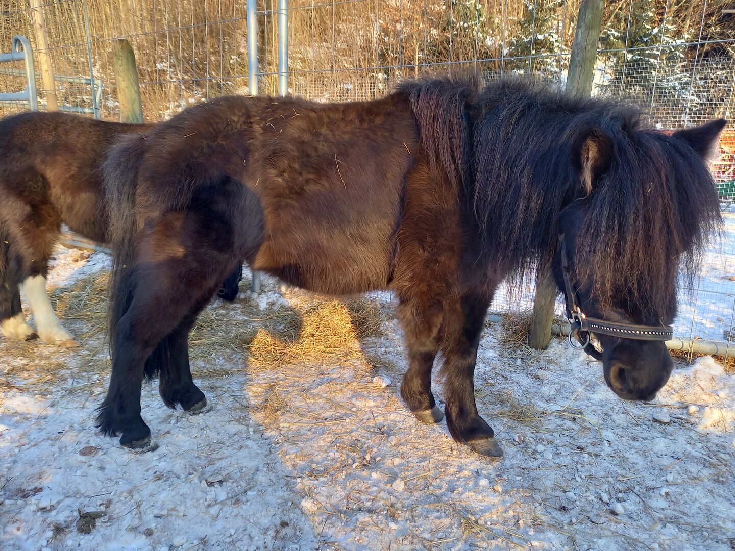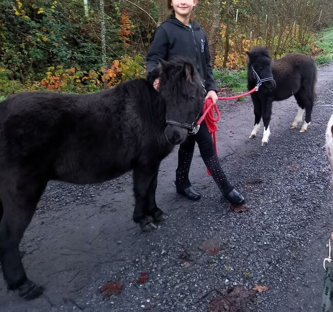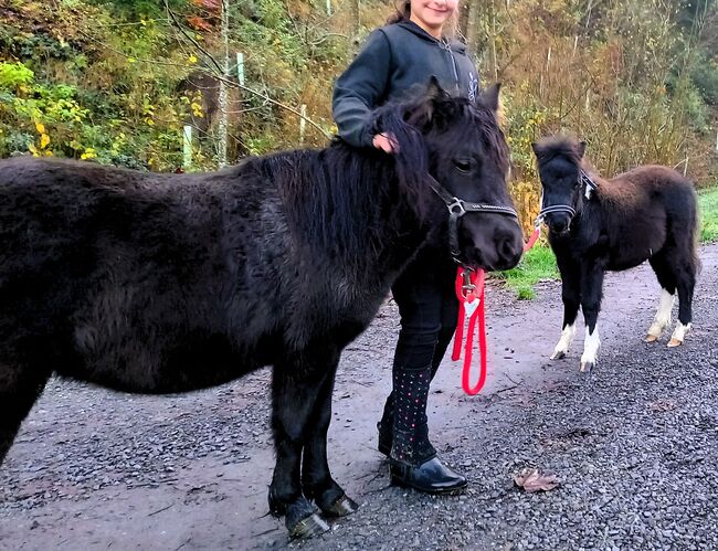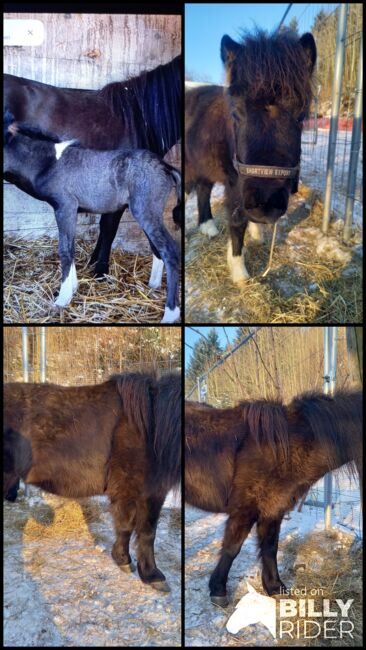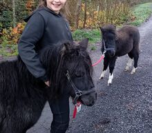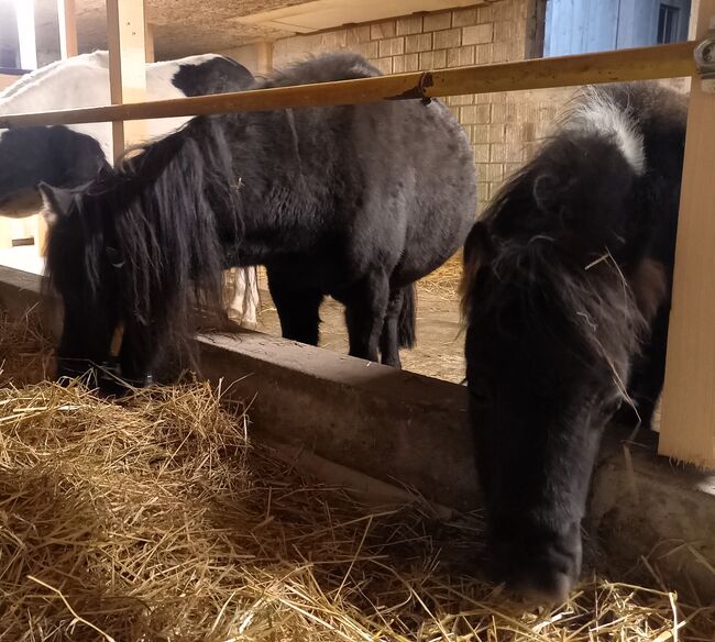 Vackert, härligt American Mini Horse-sto (6 år) söker hem - Det är med tungt hjärta som vi säljer vårt vackra 6-åriga, svarta, renrasiga American Mini Horse-sto "Surprise" (höjd 95cm), mycket snäll att hantera, van vid barn, driven (sulky travlopp), god karaktär, bra för lastning och terräng/trafiksäkerhet, robust & frisk, vaccinerad, chippad och avmaskad, hovar trimmade. Surprise är van vid att hållas utomhus och i grupp med andra ponnyer och små hästar. Hon har för närvarande också ett avvant unghästföl (född 2024), som också är till salu. De två kommer att säljas var för sig eller tillsammans till ett trevligt ställe där de kan utmanas och uppmuntras och njuta av ett artanpassat liv i lösdrift och gruppmiljö. Försäljningspris för stoet 3200,- SFr. Försäljningspris för unghästen 1500.- SFr. Försäljningspris båda tillsammans 4500.- SFr. De två ponnyerna kan besökas i Gettnau LU.