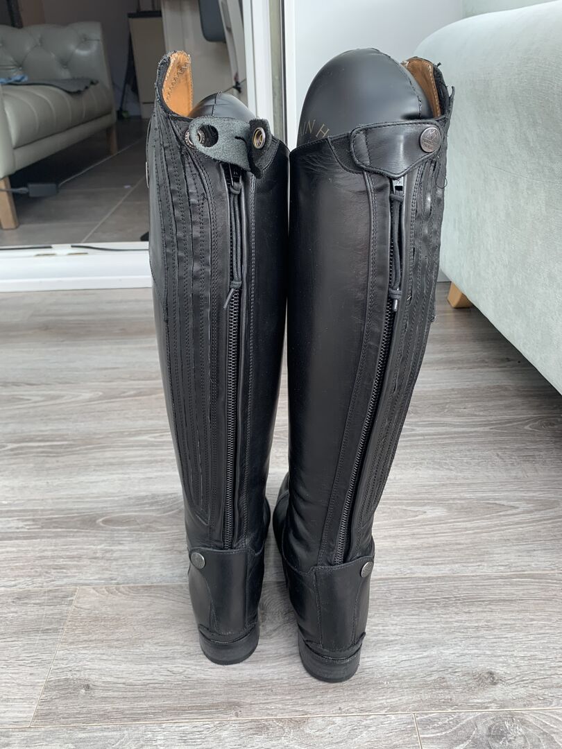 Immaculate pair of boots worn twice and decided that I want a different colour paid £275 only a couple of months ago. They are regular calf and regular height Calf width is between 37cm and 42cm as the elastic is flexible.